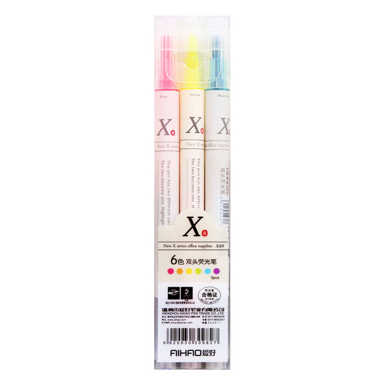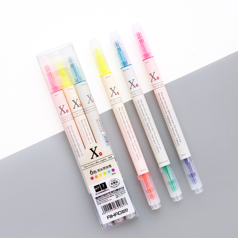 云木雜貨 3支裝6色雙頭熒光筆記號筆手賬裝飾學習重點標注涂鴉筆