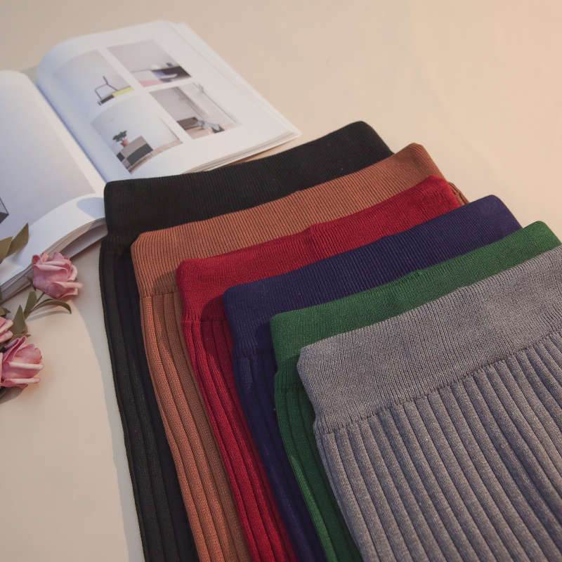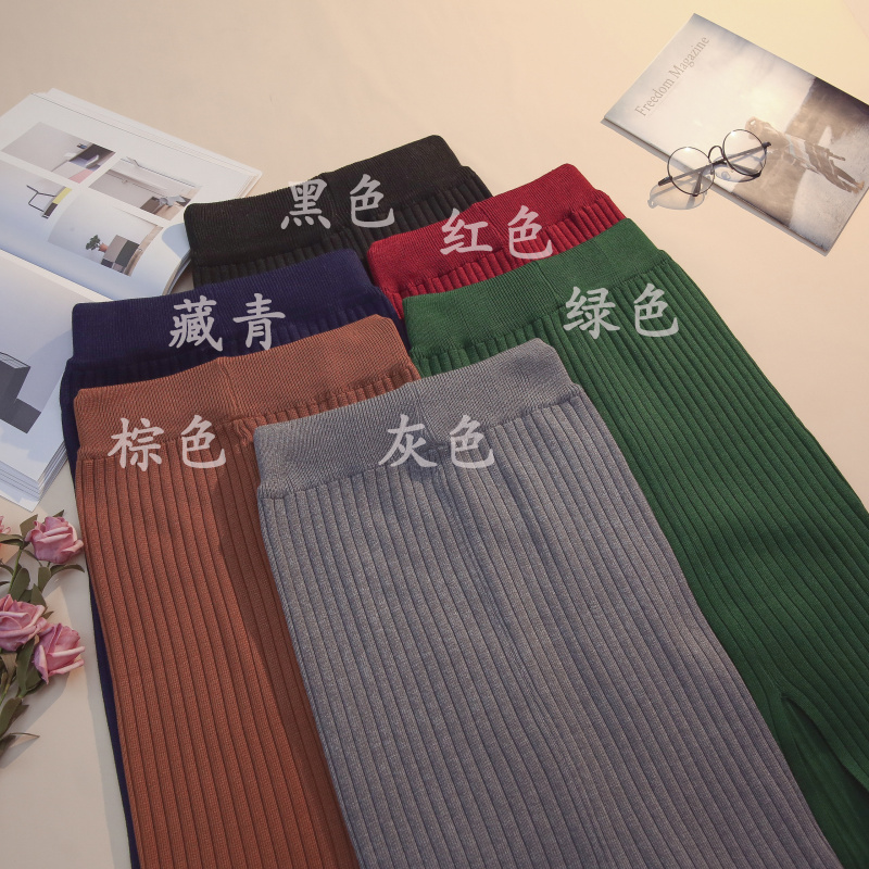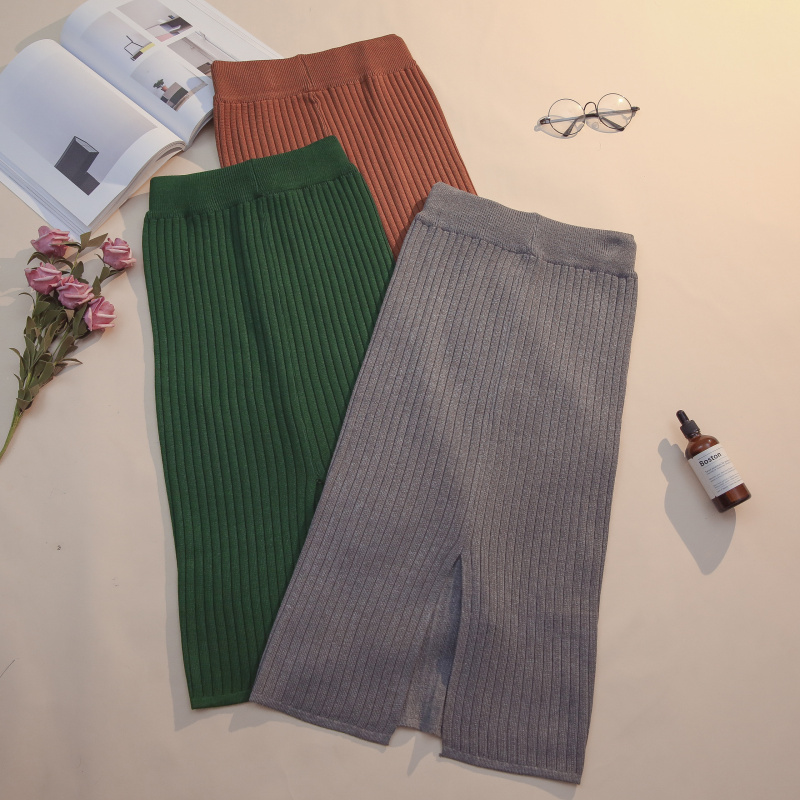 港味裙子女秋冬2018新款開叉針織半身裙女中長款包臀裙顯瘦一步裙