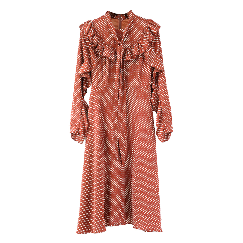 / 名媛氣質早秋網紅同款波點長袖連衣裙韓版收腰中長款內搭打底裙子