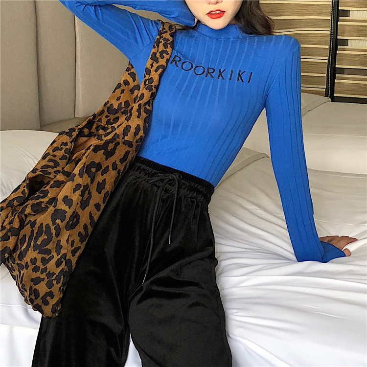 秋冬女裝2018新款字母薄毛衣修身長袖短款針織打底衫時尚T恤上衣