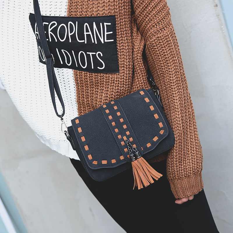 / 包包新款斜挎包女包日韓版流蘇迷你小包撞色復古磨砂單肩包潮