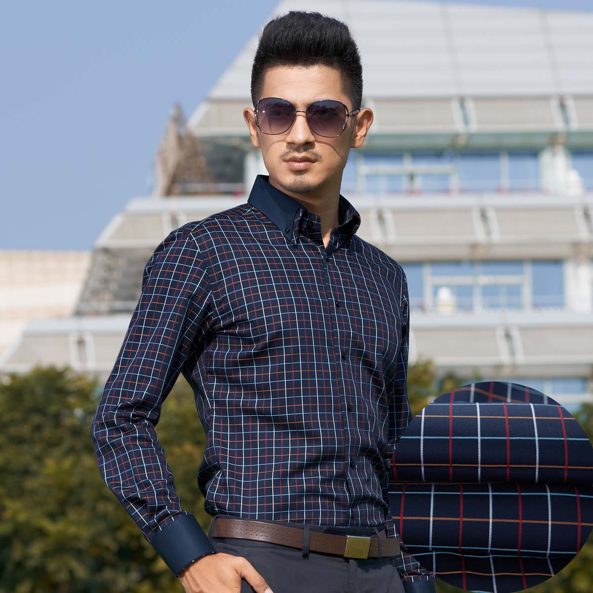 DeepOcean深海秋新款格子襯衫男長袖純棉潮男士修身休閑襯衣
