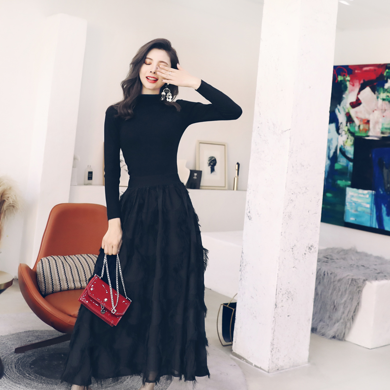 名媛氣質針織衫秋冬季女套裝時尚網紅中長款半身裙毛衣裙子兩件套