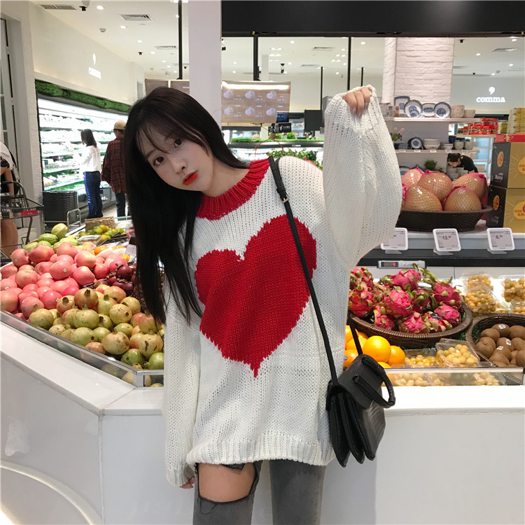 / 秋冬韓版寬松慵懶風休閑愛心情侶款網紅套頭針織衫毛衣上衣外套女