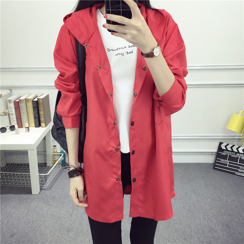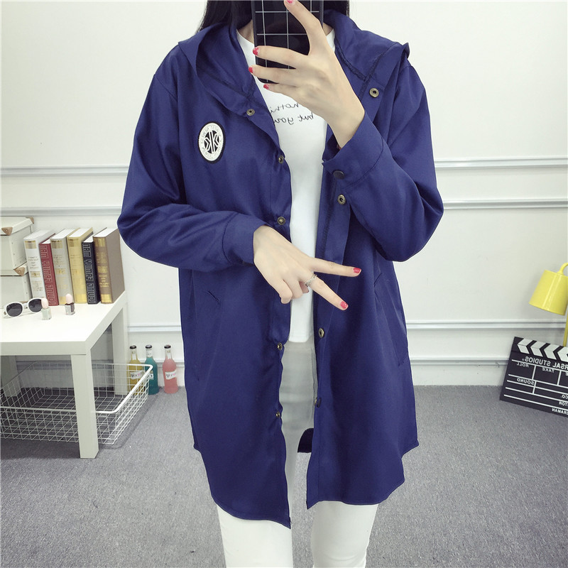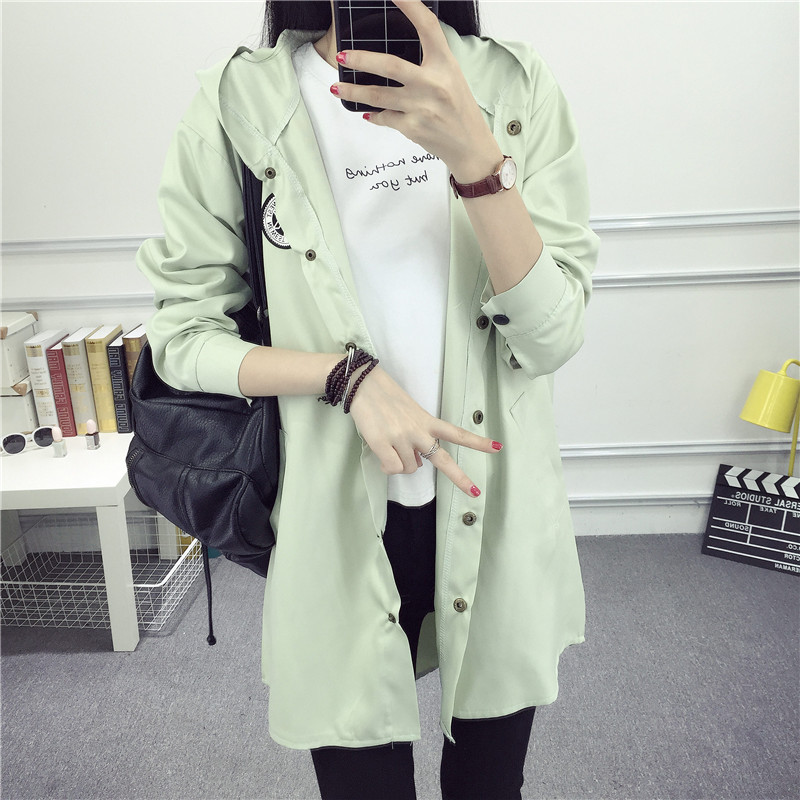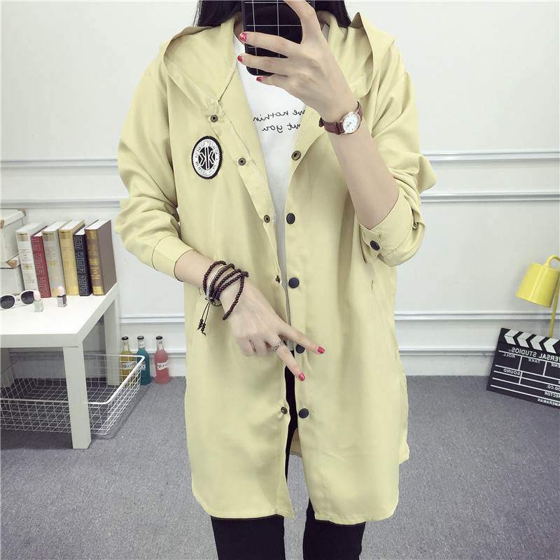 2017春夏新款女裝韓版寬松學生顯瘦中長款連帽風衣長袖外套bf潮款