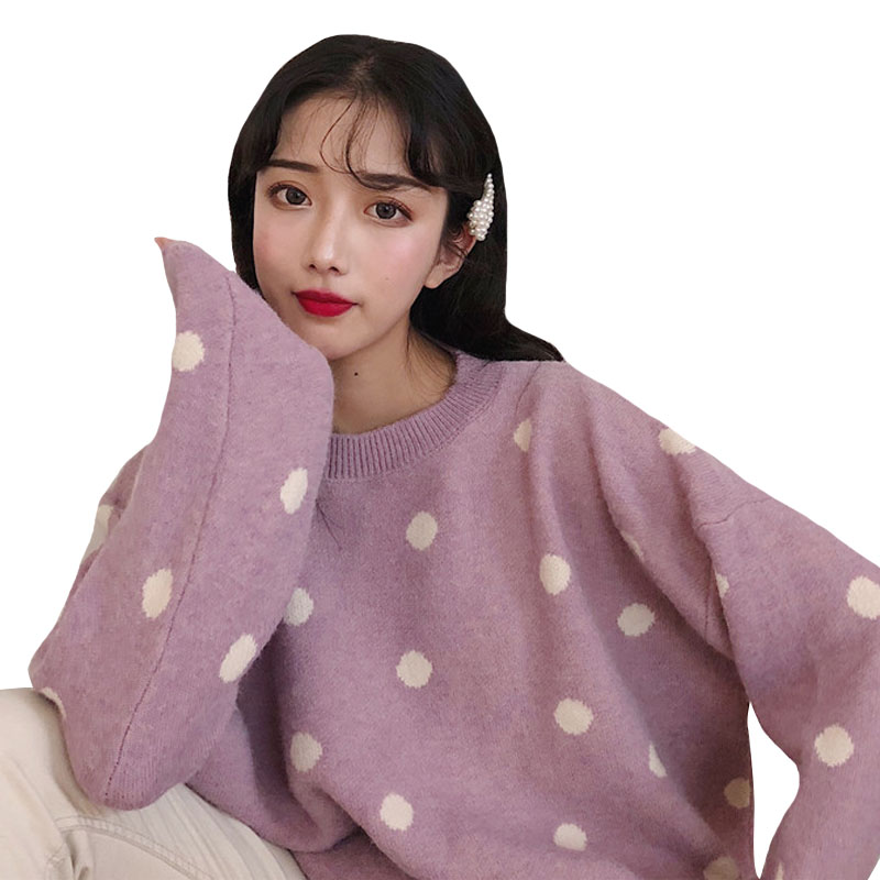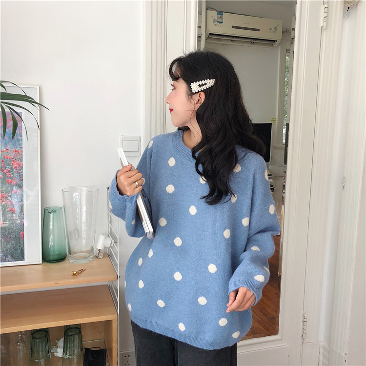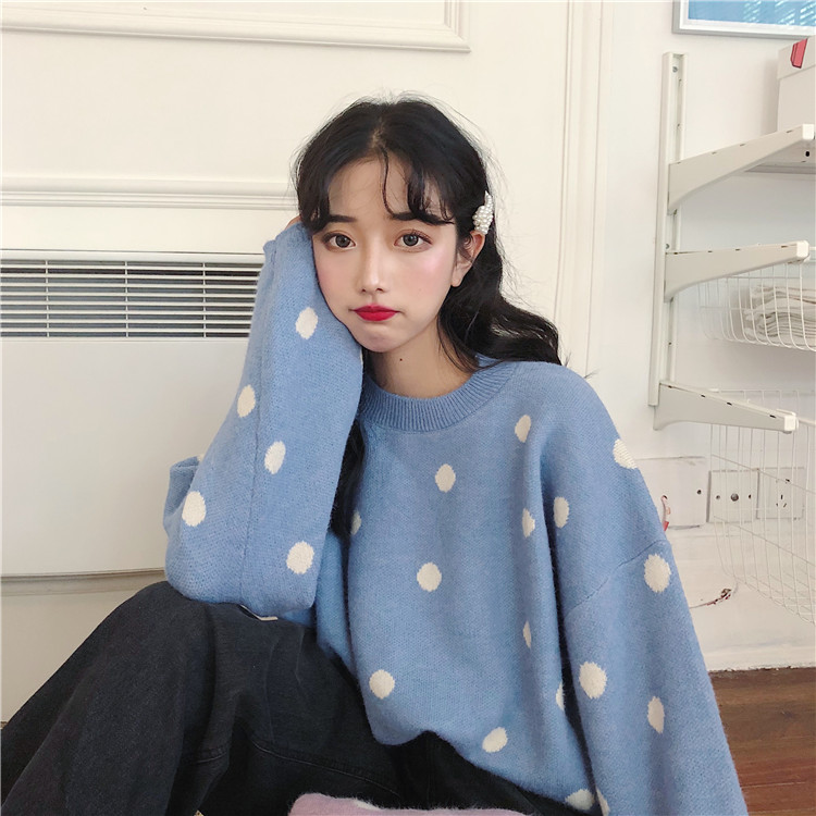 / 秋冬韓版慵懶風chic小清新波點寬松網紅套頭毛衣針織衫上衣外套女