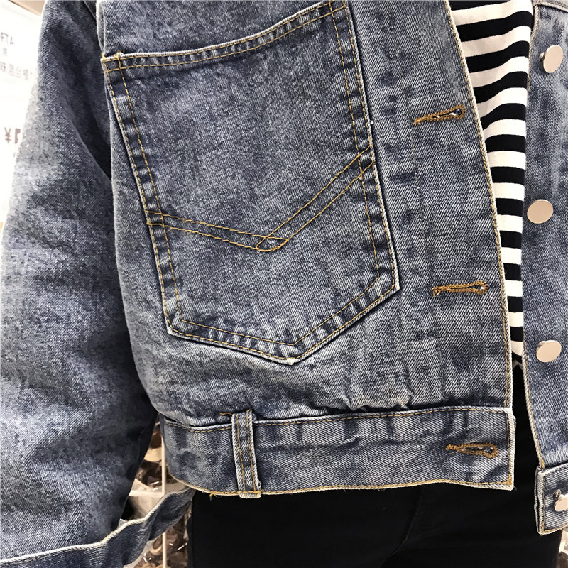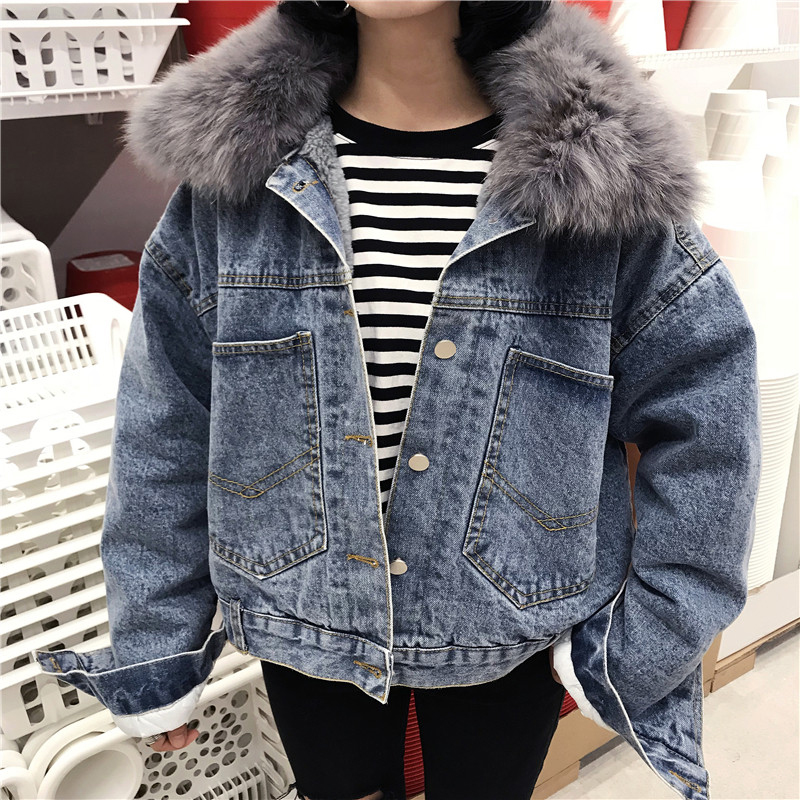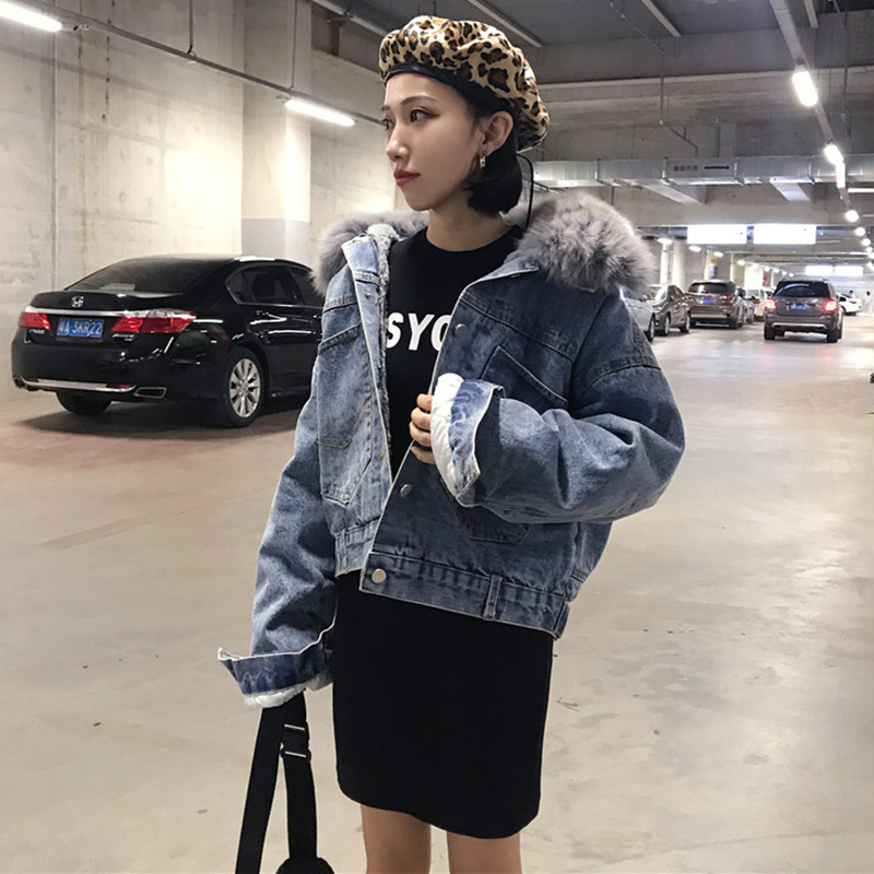 秋冬2018新款韓版毛領加絨牛仔短外套學生寬松長袖上衣保暖夾克女
