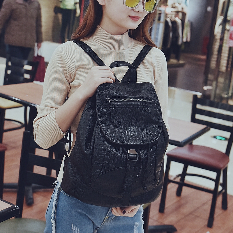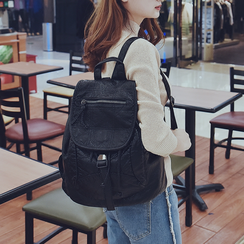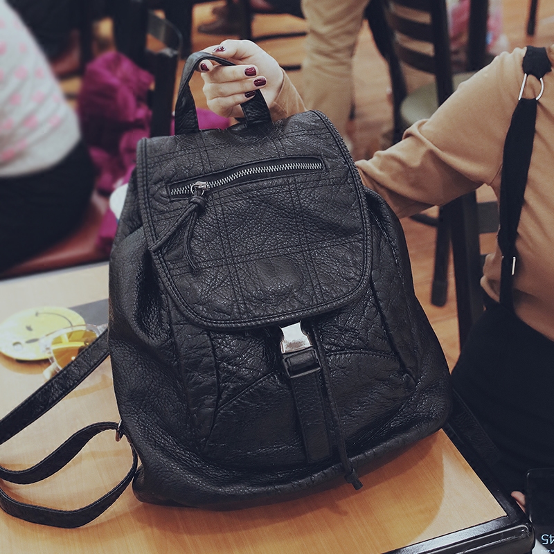 包包新款水洗皮雙肩包女韓版學院風街頭潮流時尚背包百搭書包