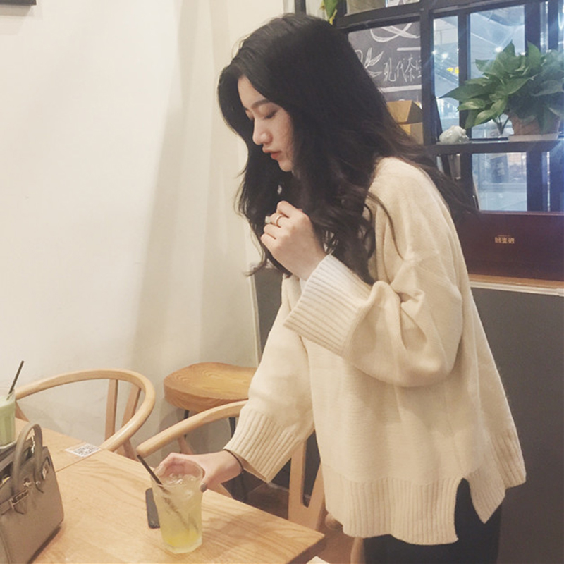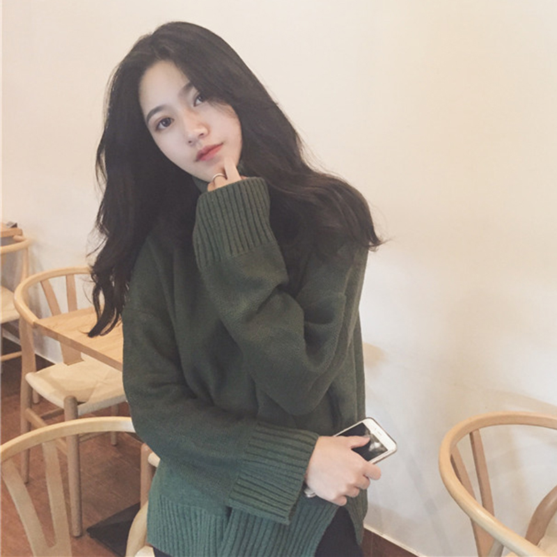 慵懶風高領毛衣外套女秋冬裝2018新款韓版寬松下擺開叉長袖針織衫