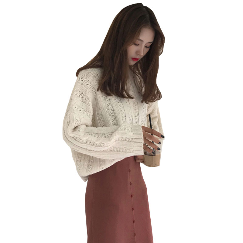 / 韓版時尚休閑套裝秋季女裝套頭毛衣針織衫+高腰開叉半身裙兩件套