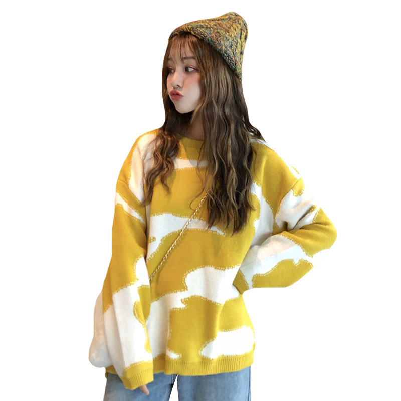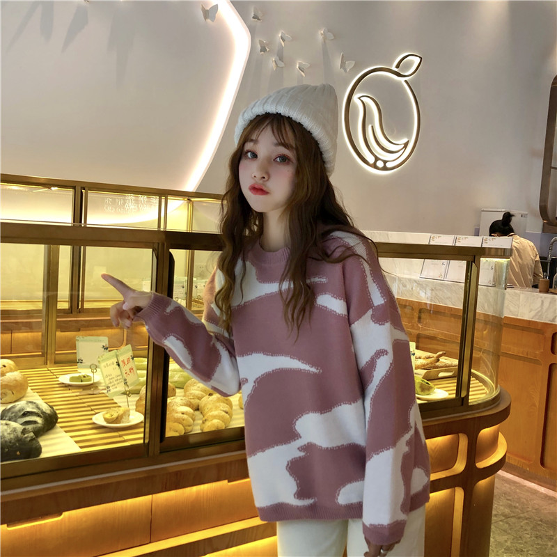 秋冬女裝韓版寬松卡通撞色加厚網紅超火套頭針織衫毛衣上衣外套潮