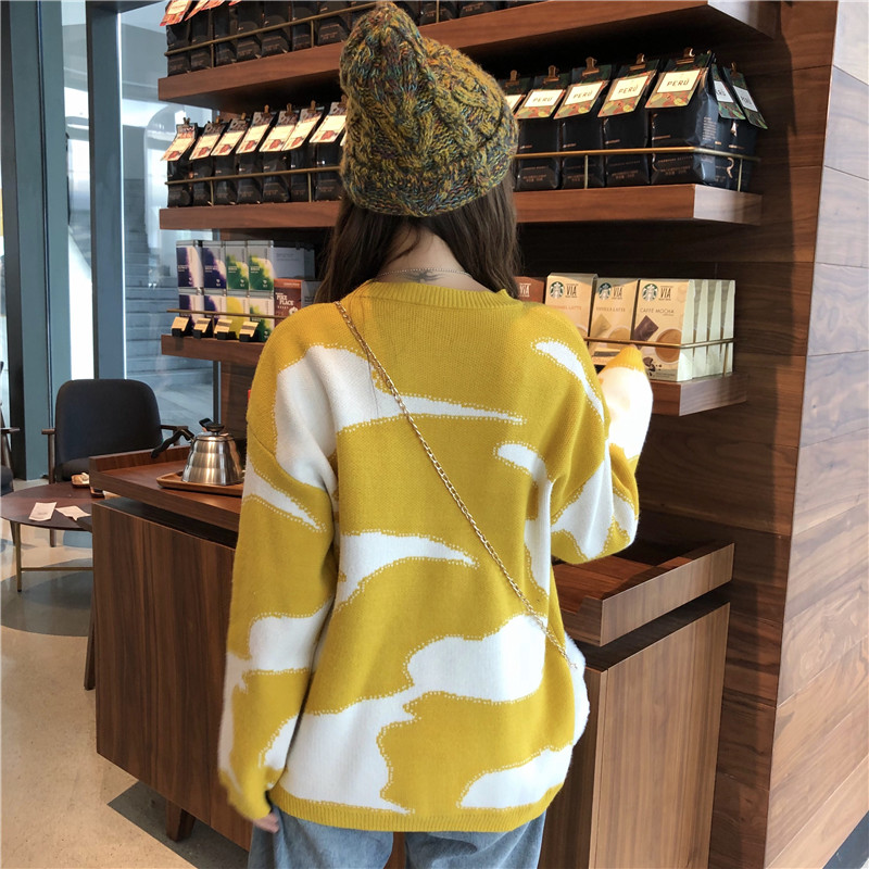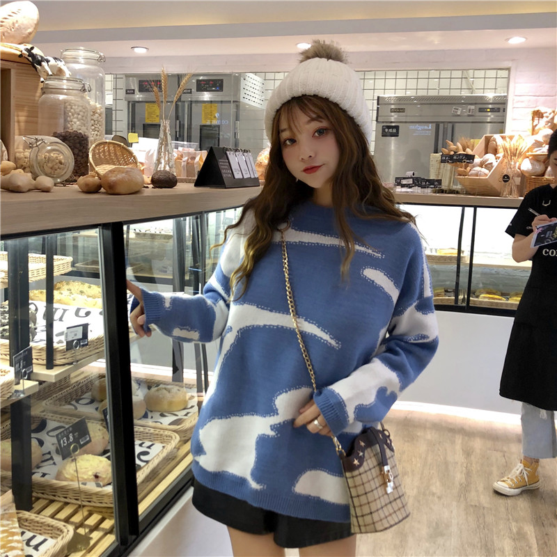 / 秋冬女裝韓版寬松卡通撞色加厚網紅超火套頭針織衫毛衣上衣外套潮