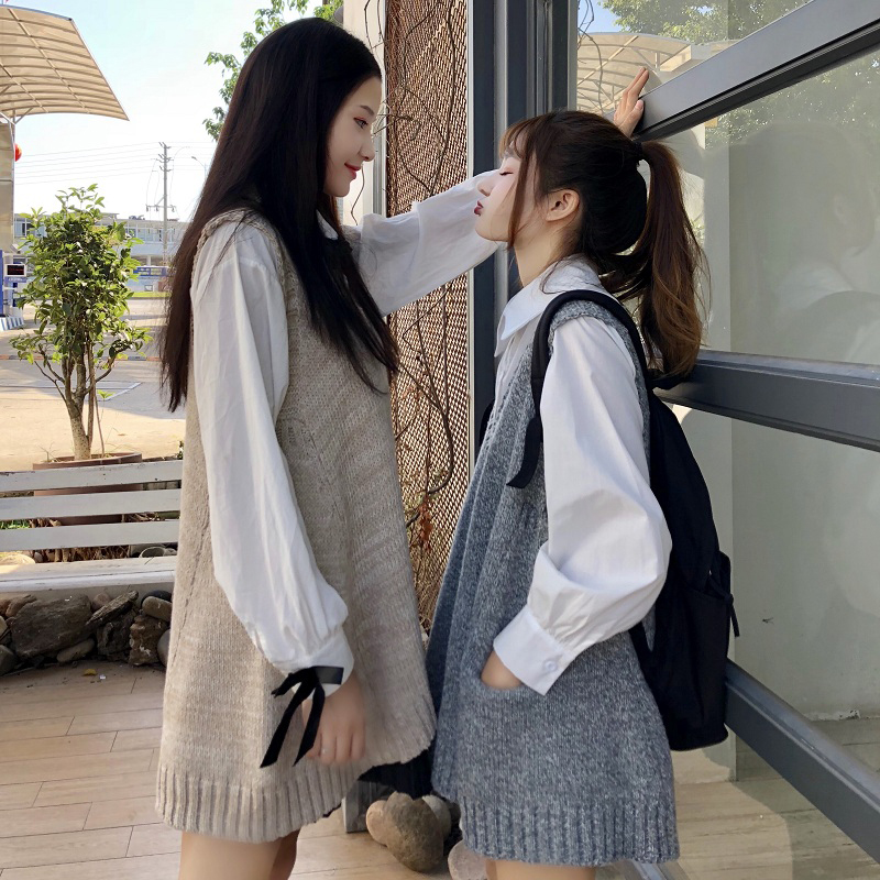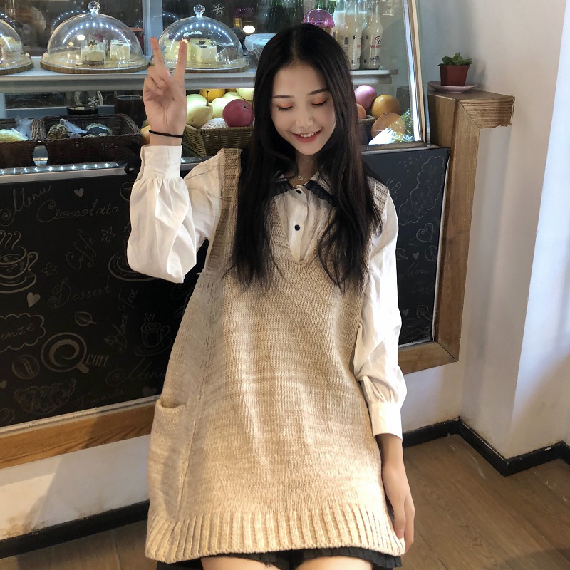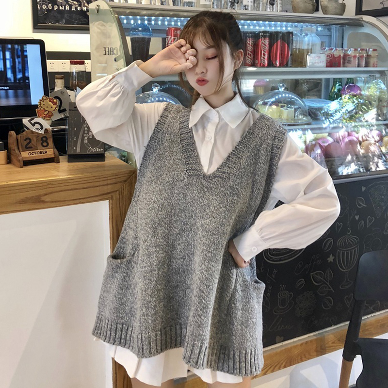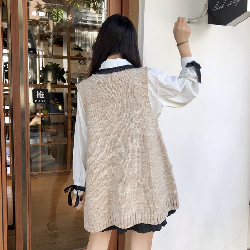 閨蜜裝無袖毛衣外套女2018秋冬新款韓版寬松百搭V領背心針織馬甲