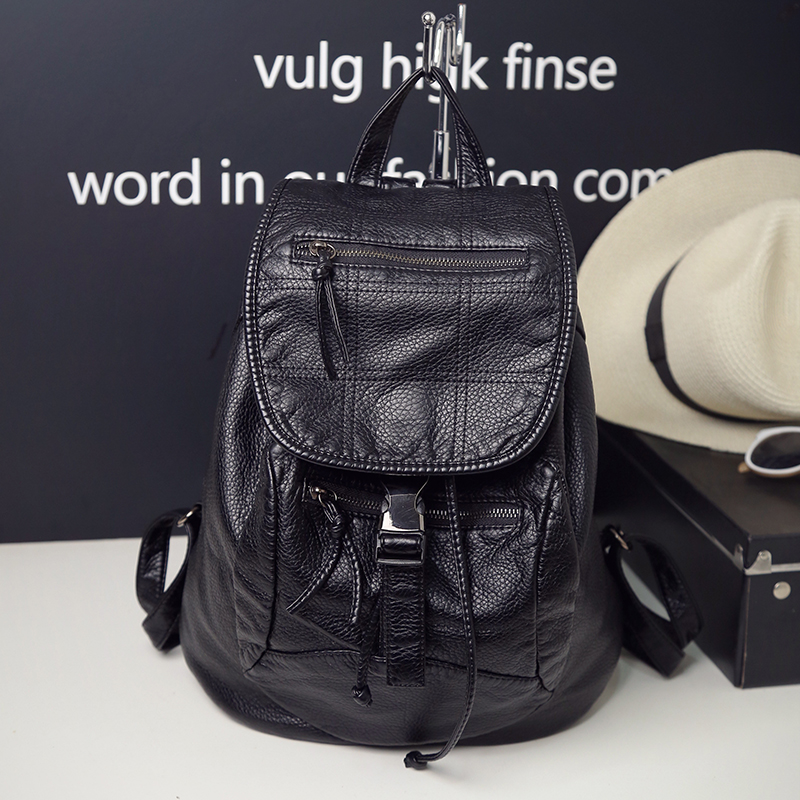 秋冬雙肩包女水洗皮新款背包學院風時尚書包潮流休閑旅行包包