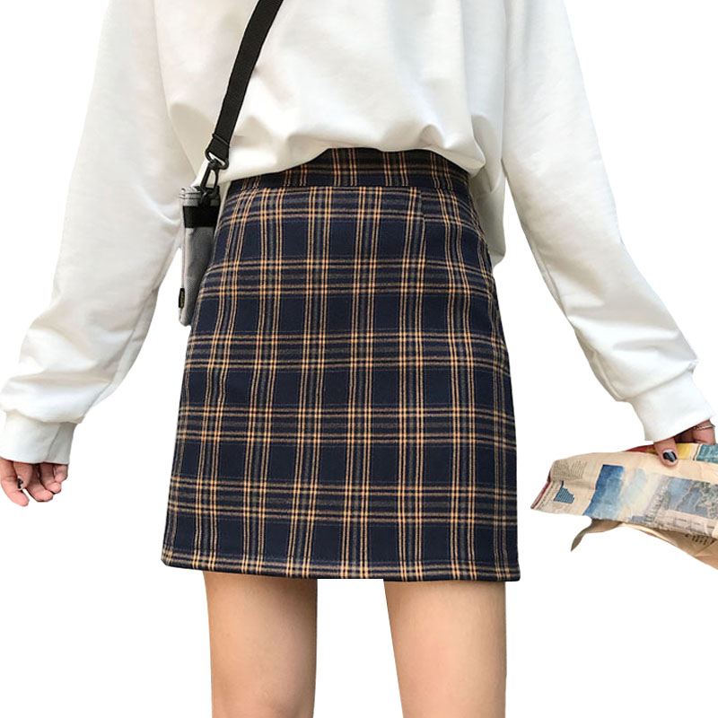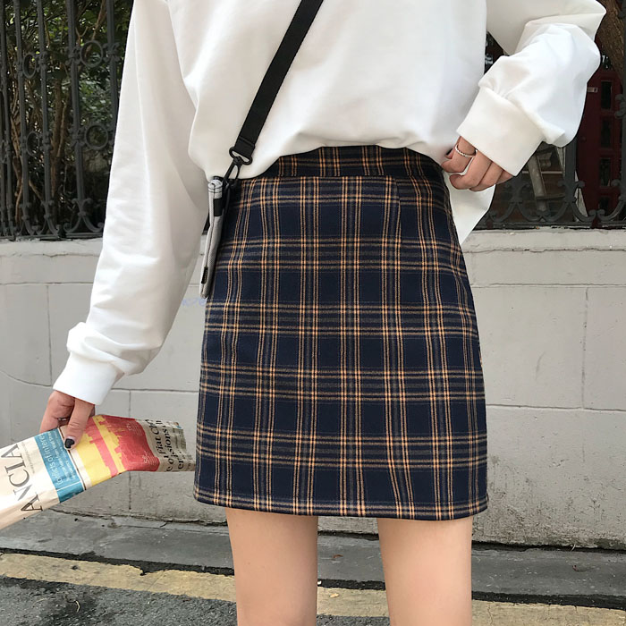 秋季女裝韓版寬松格子半身裙高腰百搭顯瘦短款裙子學生A字裙短裙