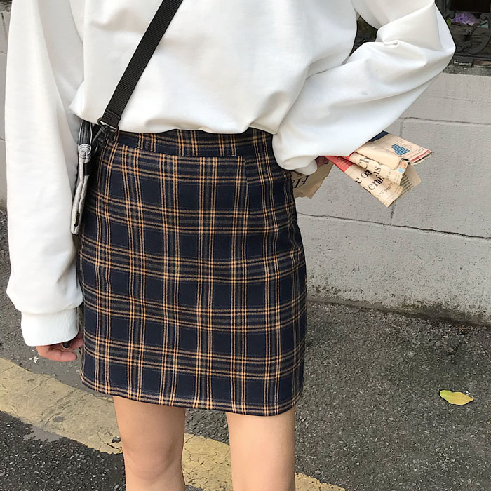 / 秋季女裝韓版寬松格子半身裙高腰百搭顯瘦短款裙子學生A字裙短裙