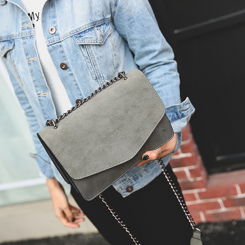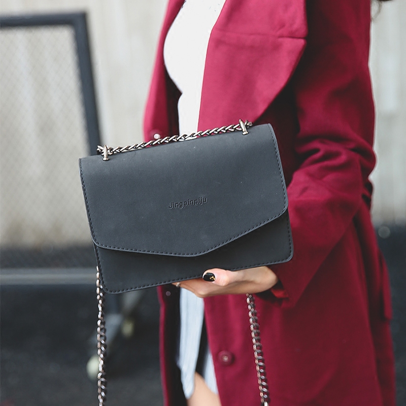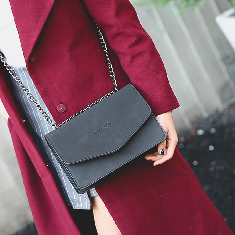 新款韓版磨砂撞色小方包迷你鏈條風琴包簡約單肩斜挎包女小包