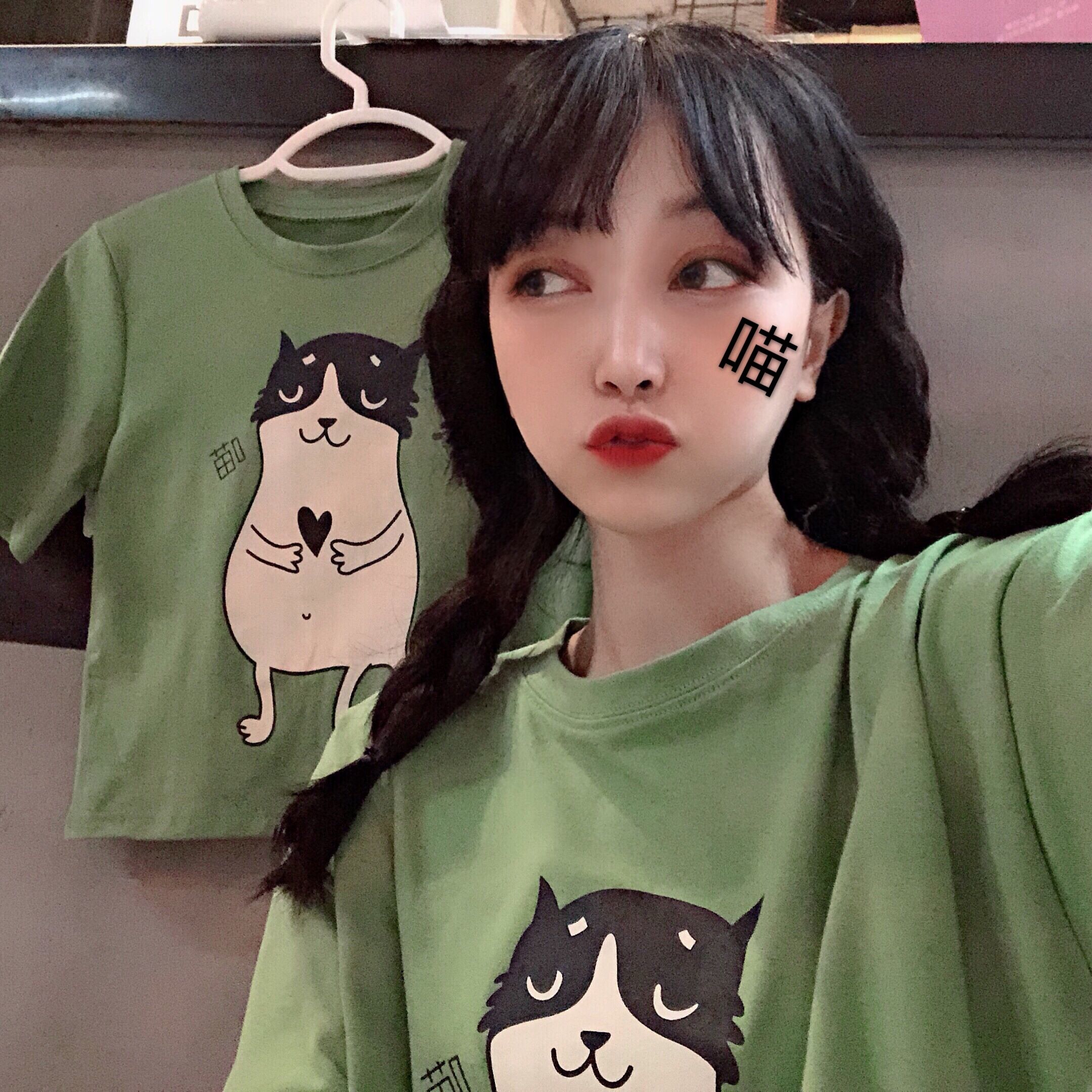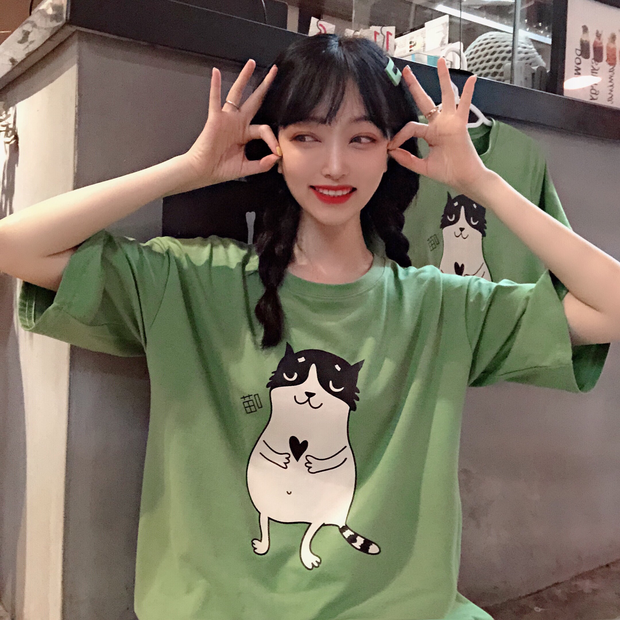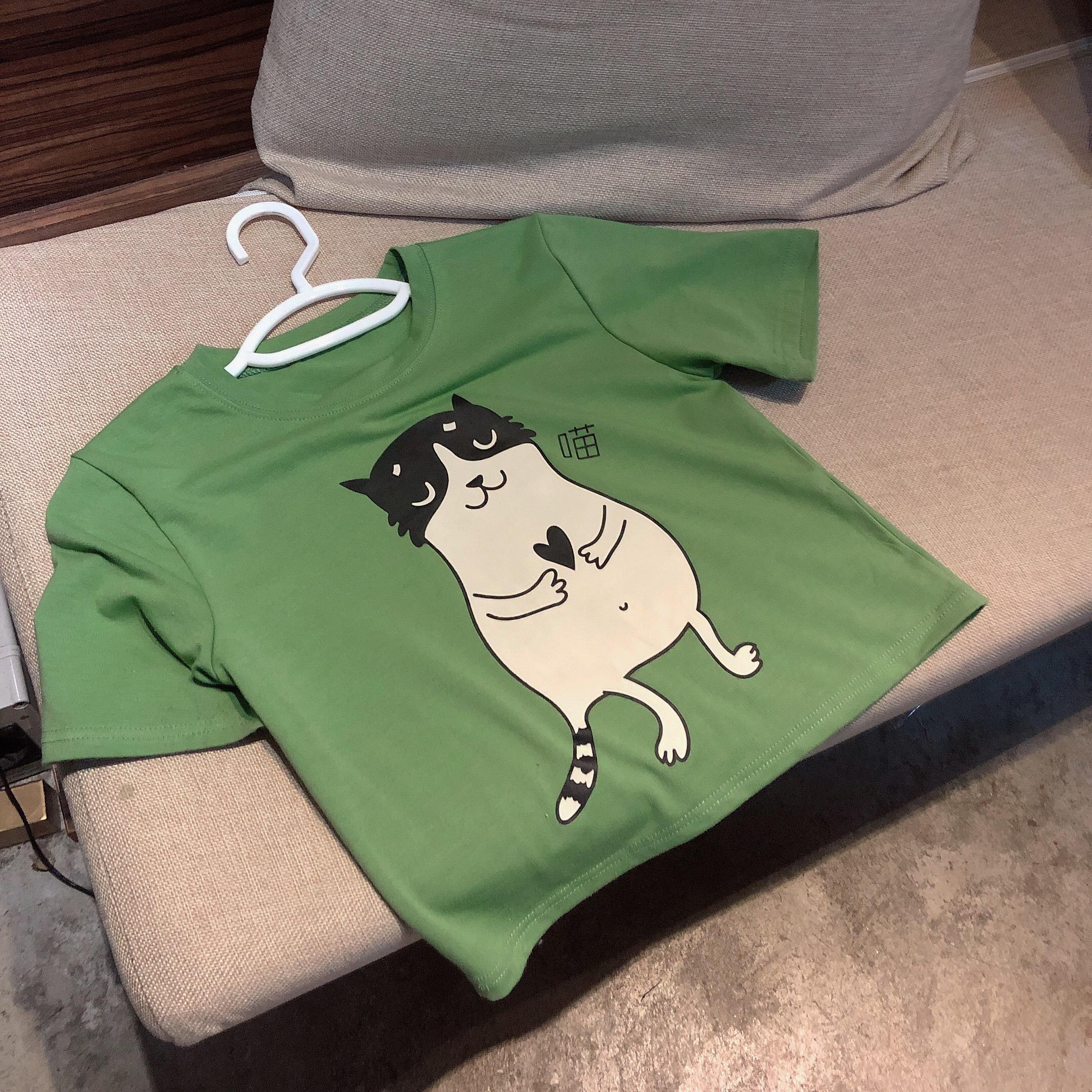 YUKI小樹家 網紅ins貓咪印花短款T恤韓版學生可愛中長款mschf上衣