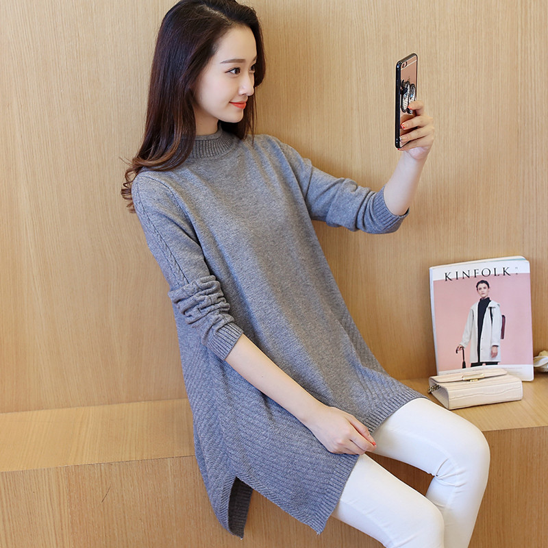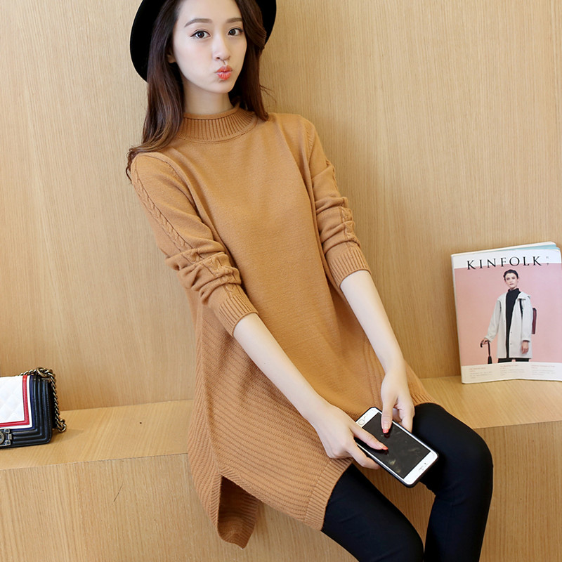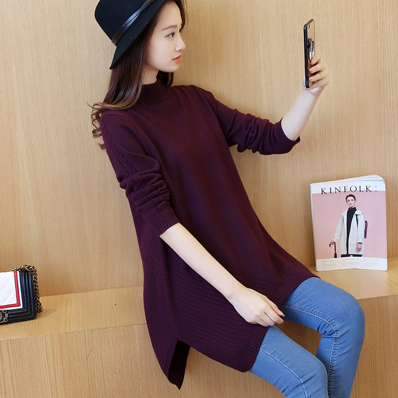 秋冬毛衣女套頭寬松中長款韓版針織衫半高領打底衫女裝新款潮
