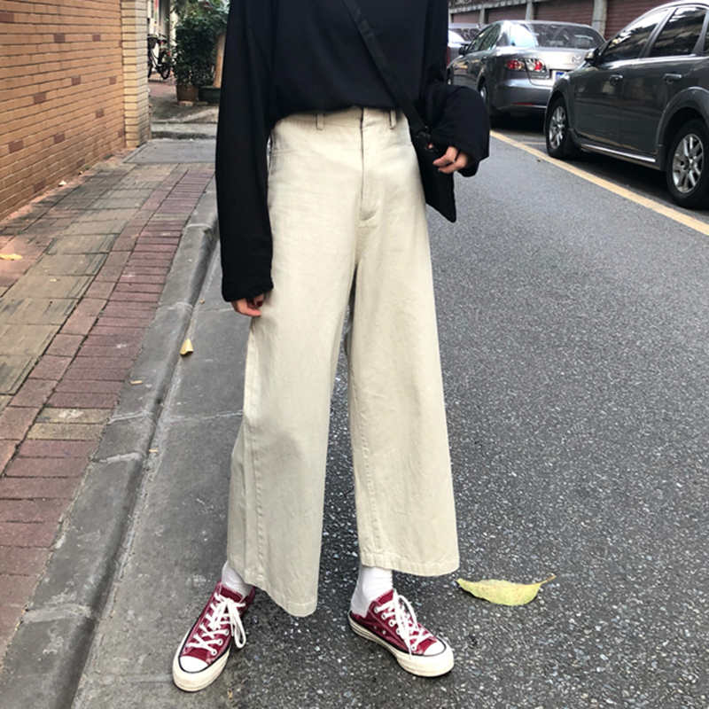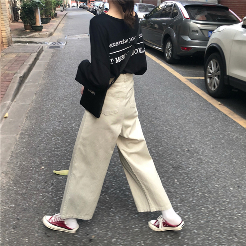 / 韓版休閑闊腿褲女學生2018秋裝新款高腰寬松顯瘦黑色直筒褲長褲子