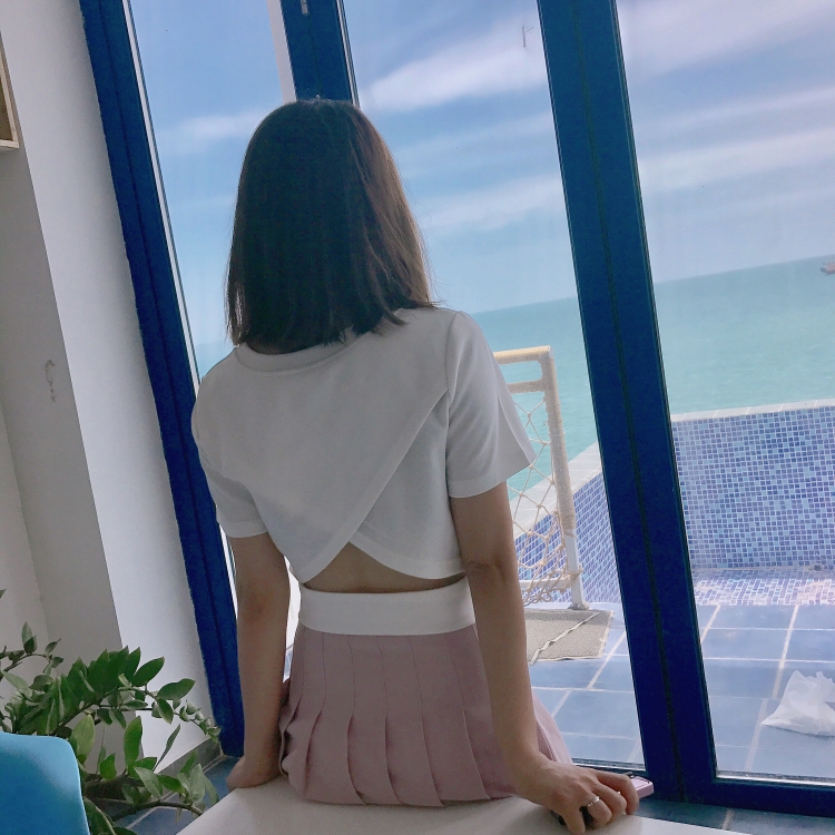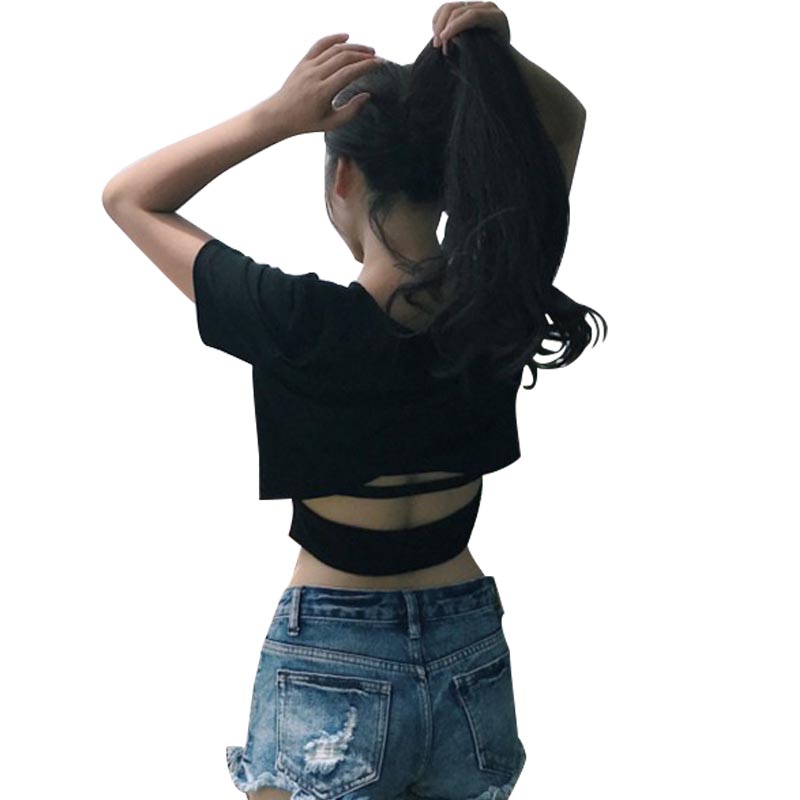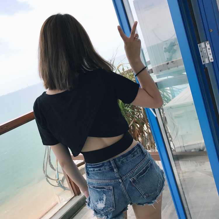 / 春夏女裝韓版修身百搭露背短袖T恤短款露臍上衣打底衫顯瘦學生潮