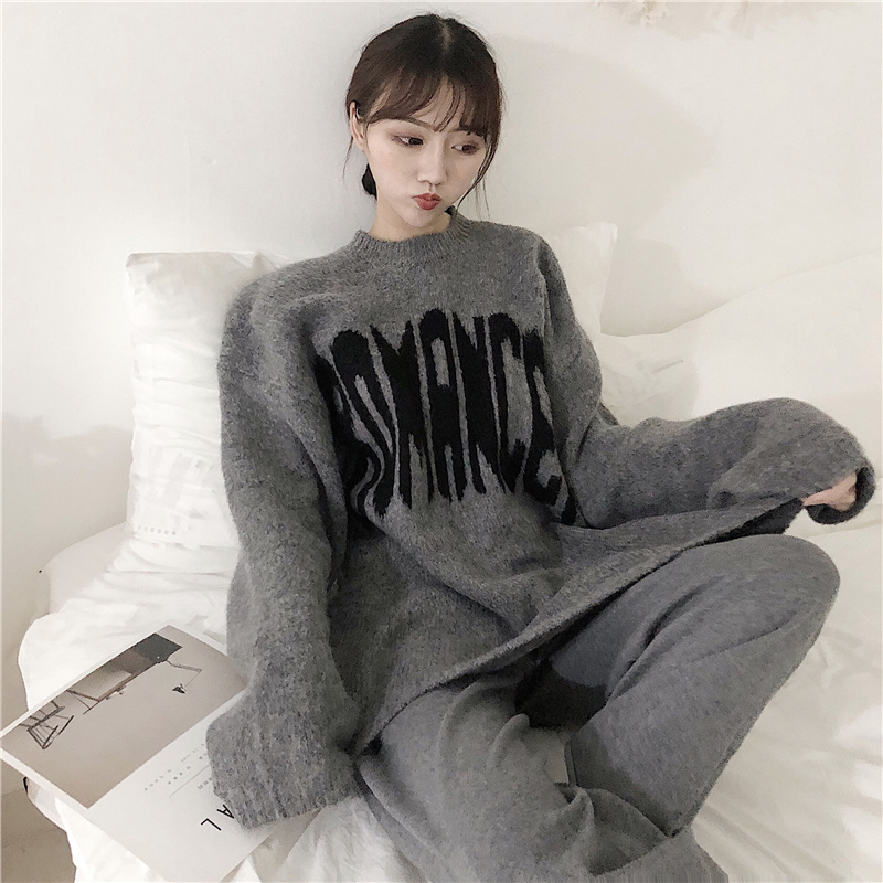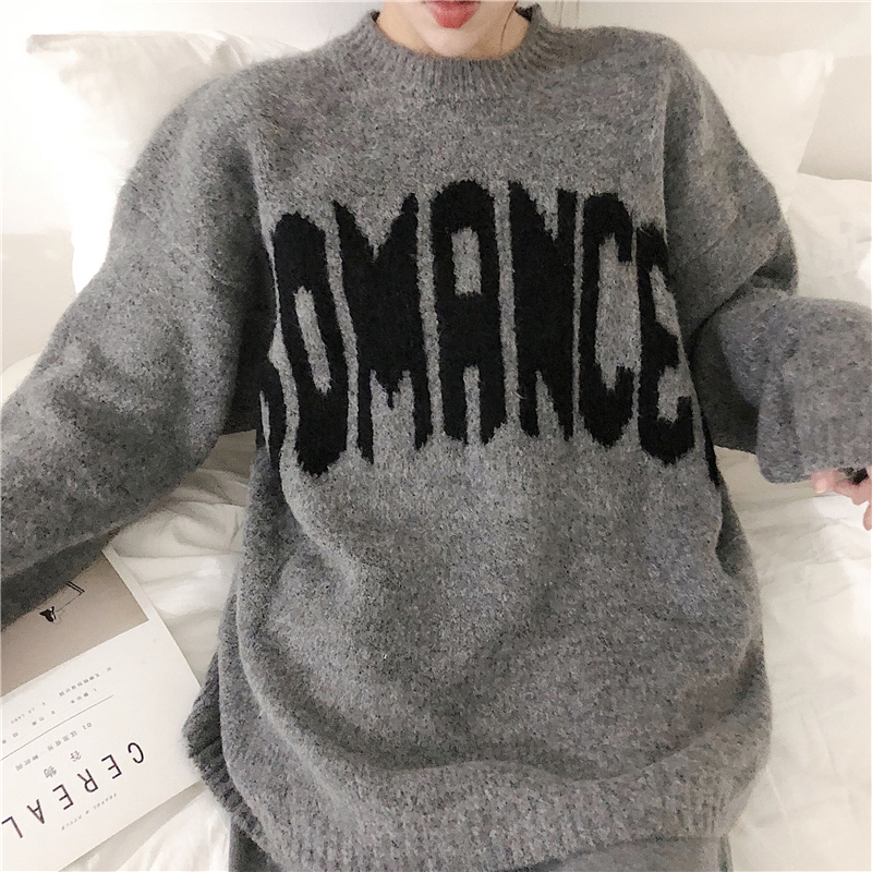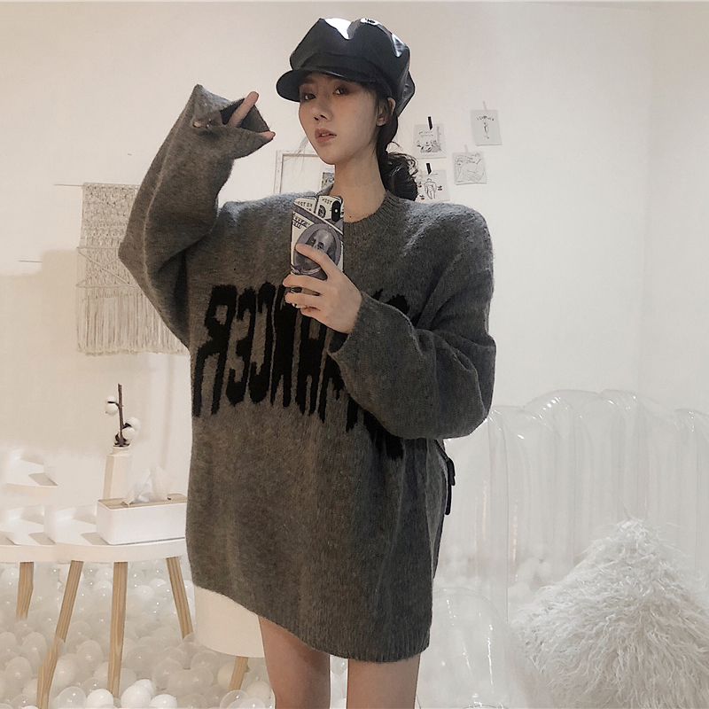 慵懶風中長款毛衣外套女秋冬裝2018新款韓版寬松字母套頭針織衫潮