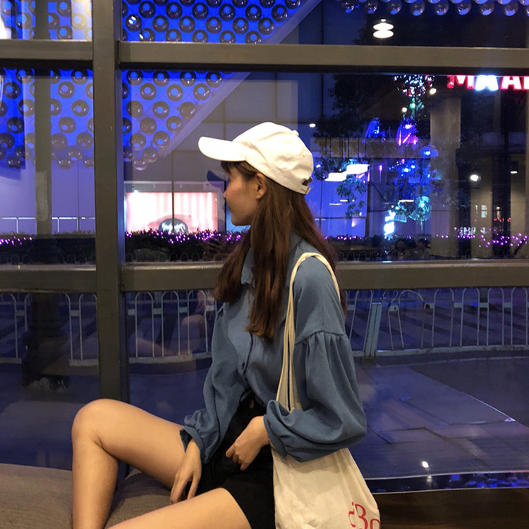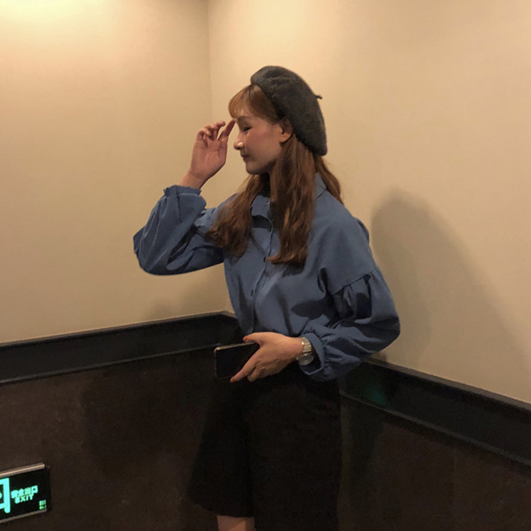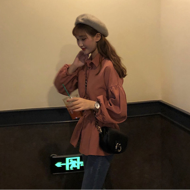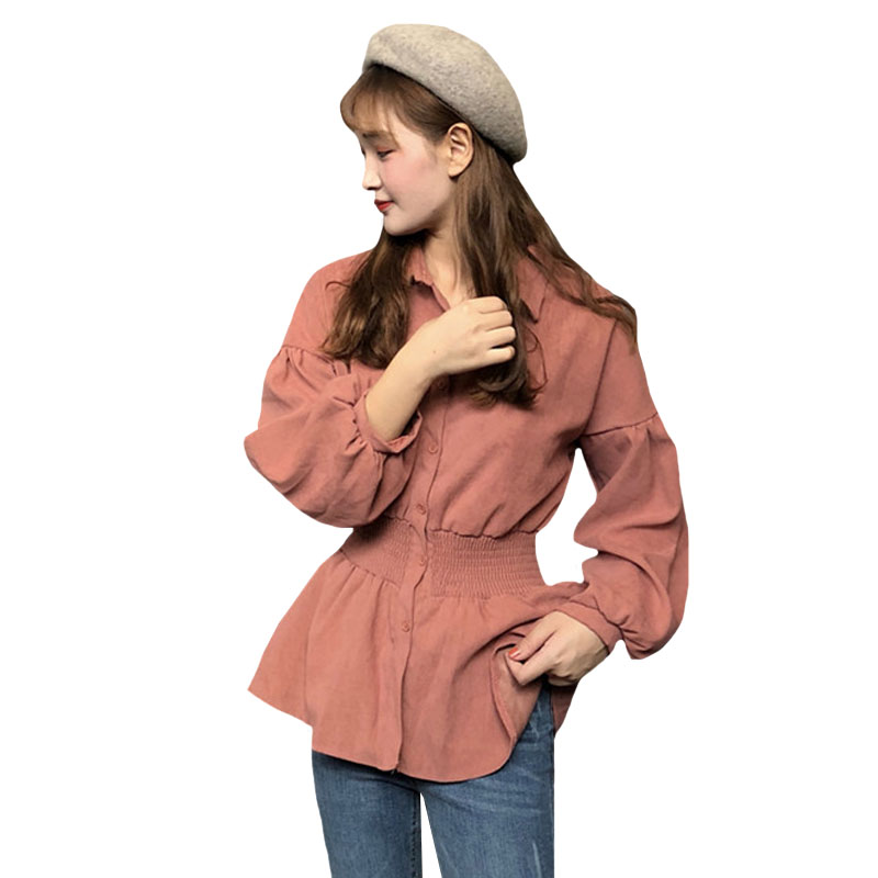 / 秋季女裝韓版氣質收腰顯瘦純色燈籠袖襯衫學生休閑長袖襯衣上衣潮