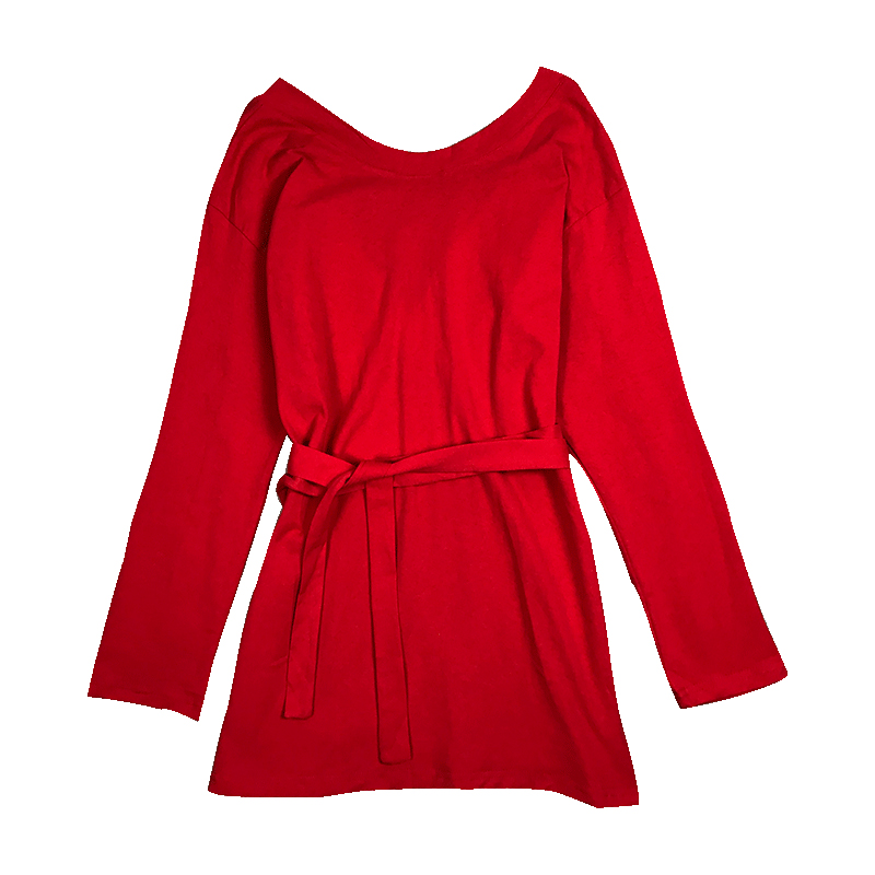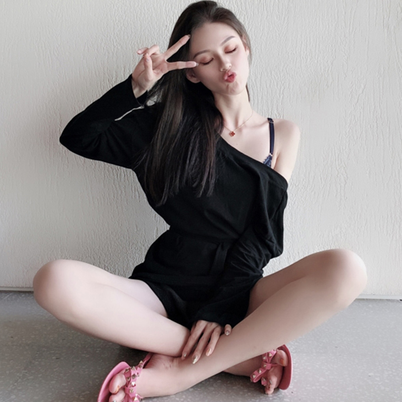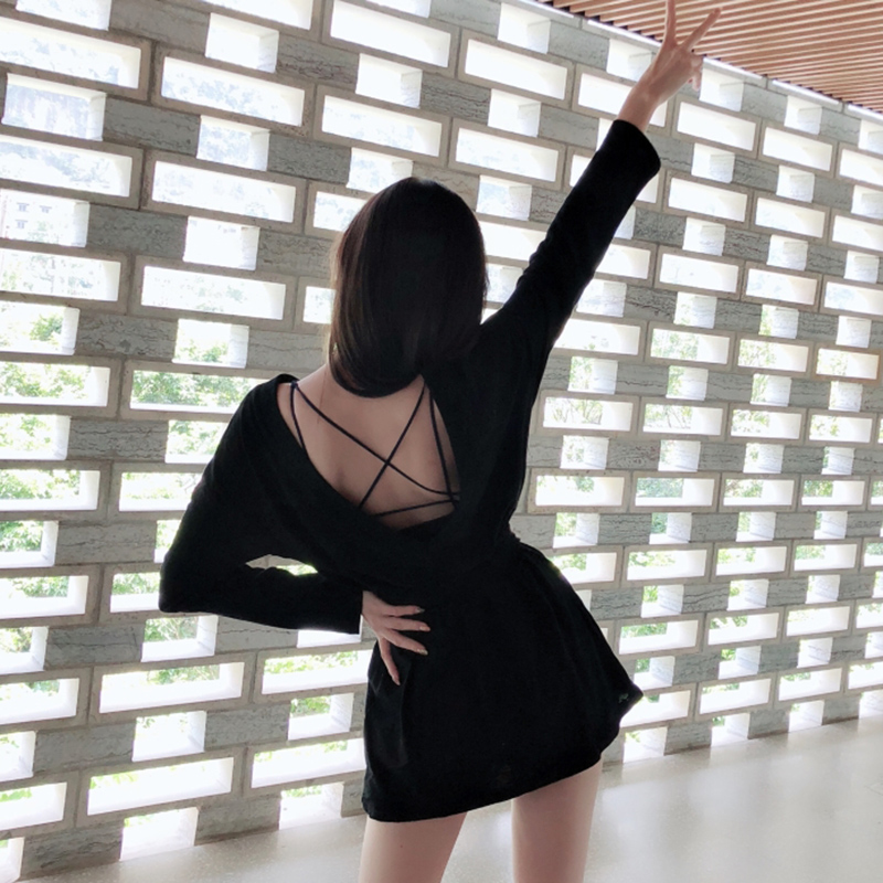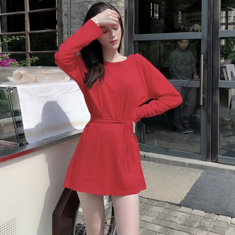 / 2018早秋新款女裝韓版綁帶收腰露肩長袖白T恤心機露背中長上衣潮