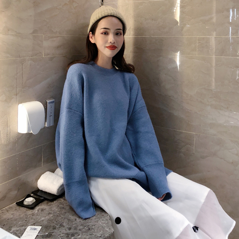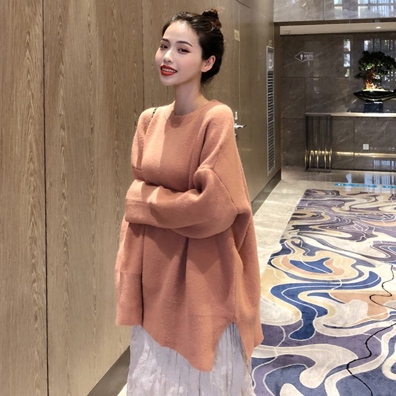 / 寬松慵懶風套頭網紅ins毛衣女秋冬2018新款韓版外穿中長款針織衫