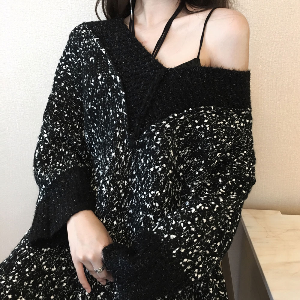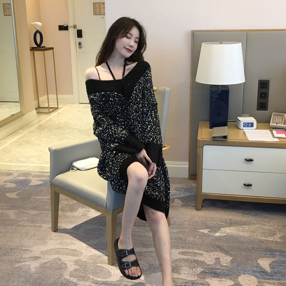 / 港味復古慵懶風套頭毛衣女2018新款秋加厚長款針織毛衣裙連衣裙女