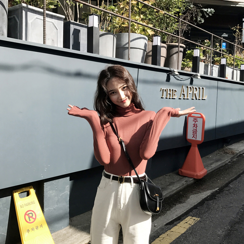 10色入韓版基礎百搭款堆堆領高領秋天上衣女潮百搭長袖T恤打底衫