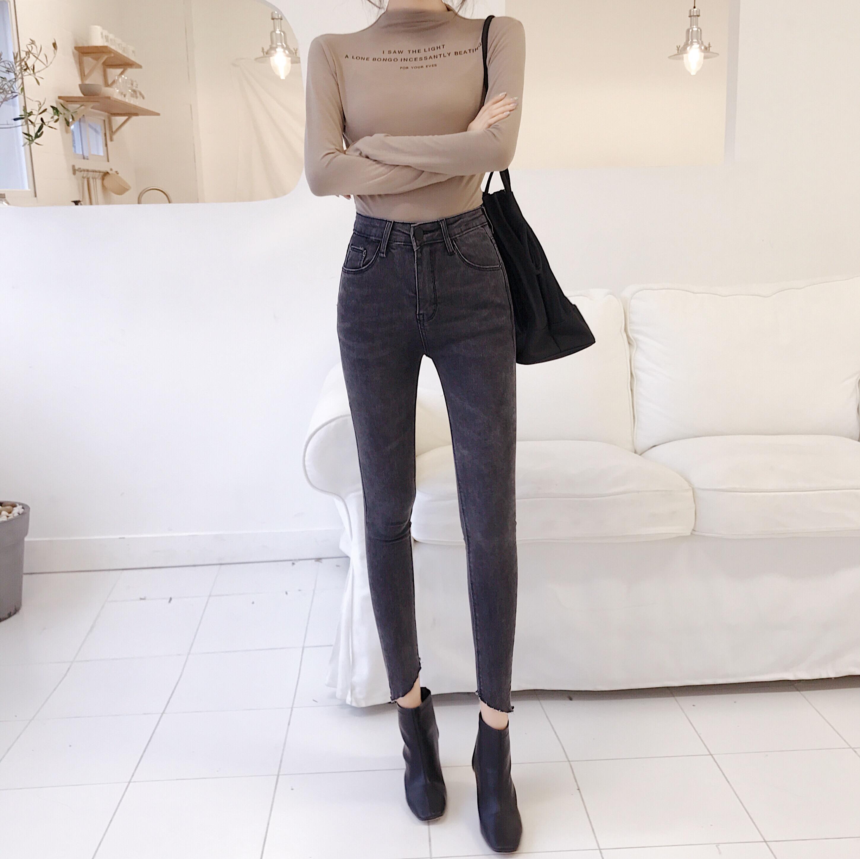 褲子2018新款時尚韓國高腰彈力牛仔褲百搭顯瘦九分褲小腳鉛筆褲女