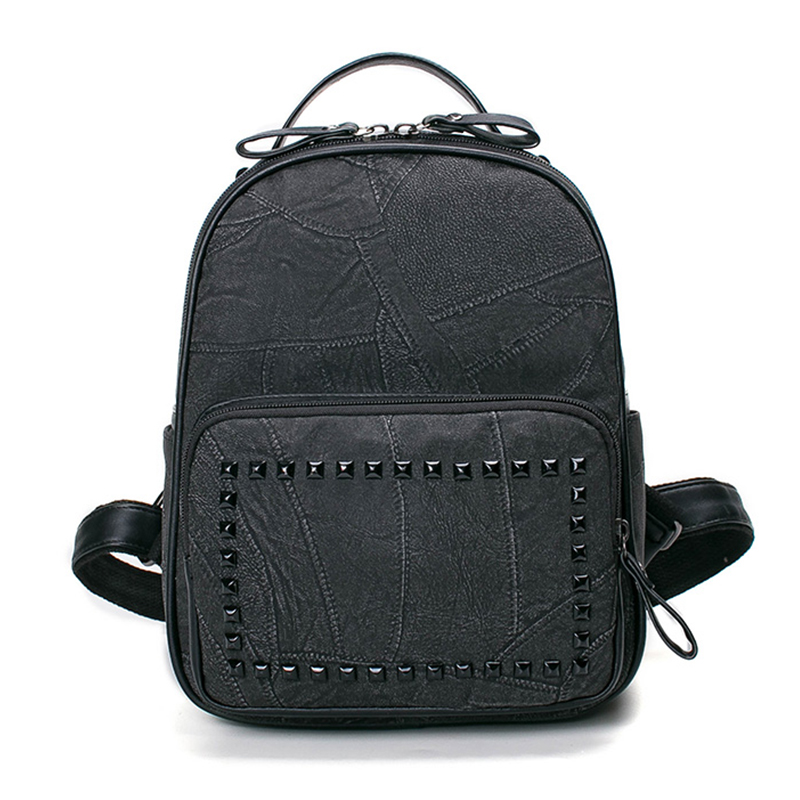 秋冬新款小背包韓版磨砂雙肩包女學院風鉚釘休閑書包旅行包包