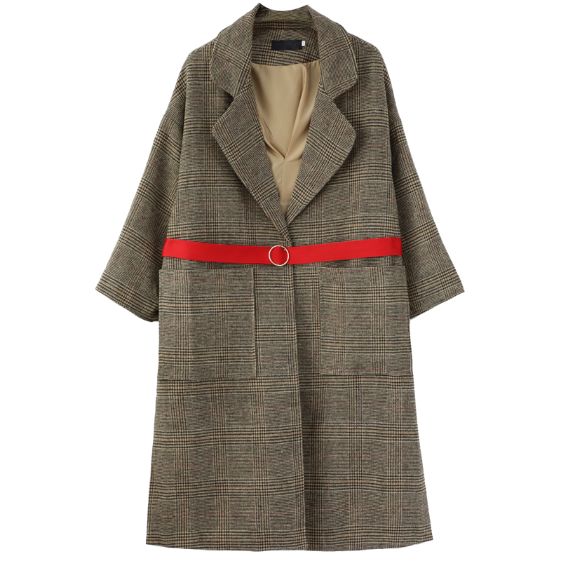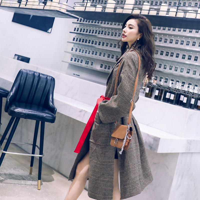 名媛氣質2018新款秋冬網紅大衣女中長款格子韓版西裝復古毛呢外套
