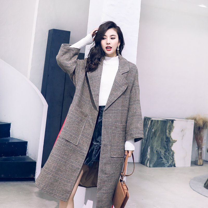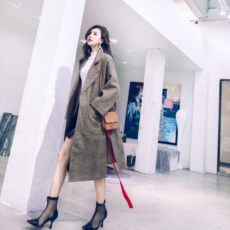 / 名媛氣質2018新款秋冬網紅大衣女中長款格子韓版西裝復古毛呢外套