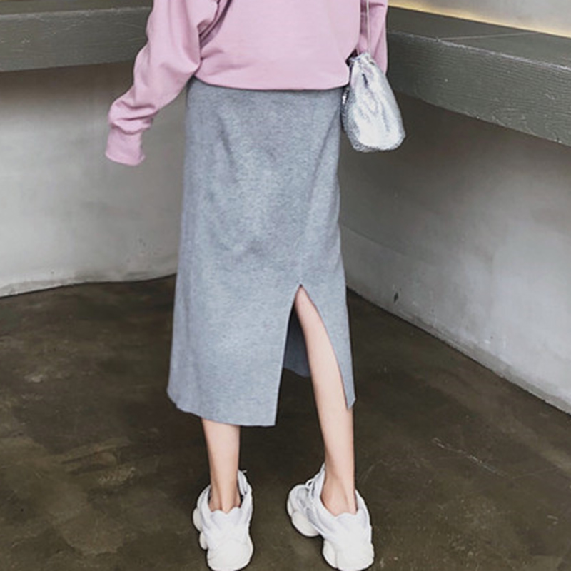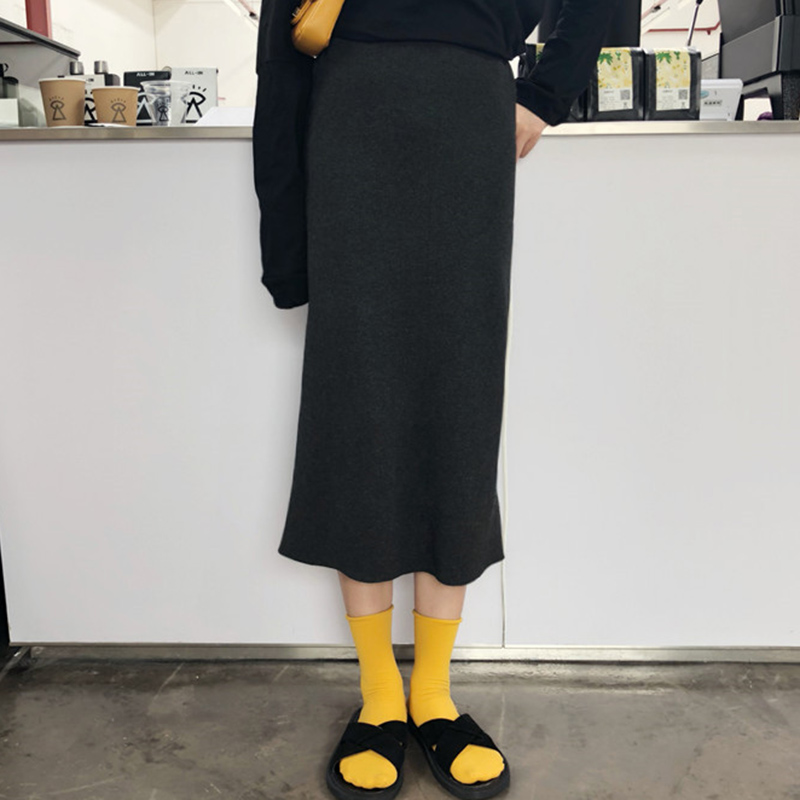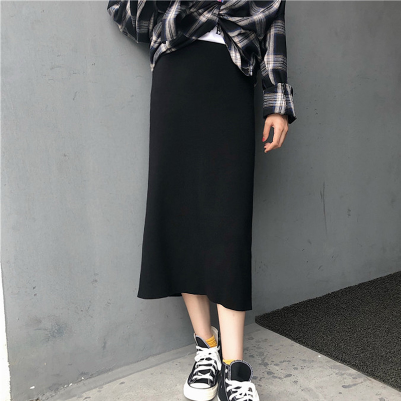 早秋2018新款女裝港味氣質修身中長裙學生休閑開叉針織包臀半身裙