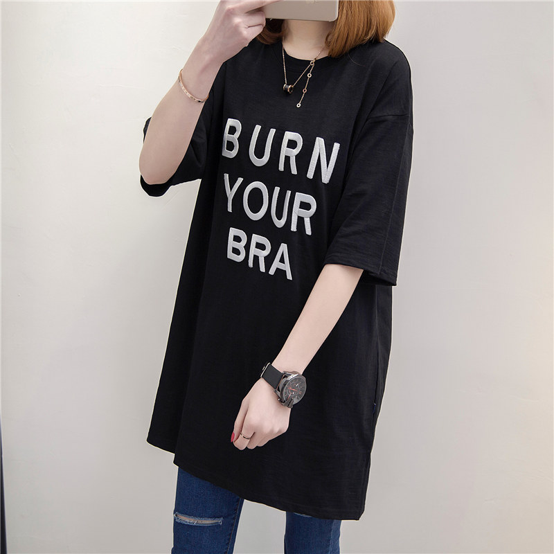 / 中長款短袖t恤女寬松韓版學生百搭夏季女裝新款白色體恤小衫