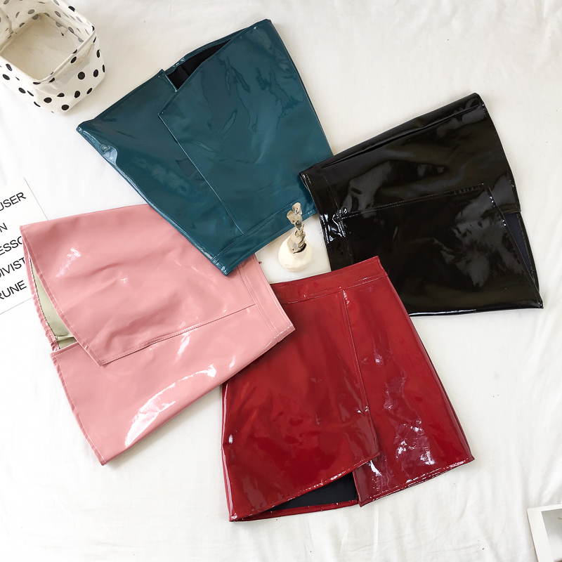 / 時尚亮皮短裙秋裝女2018新款洋氣高腰不規則半身裙A字包臀裙子潮