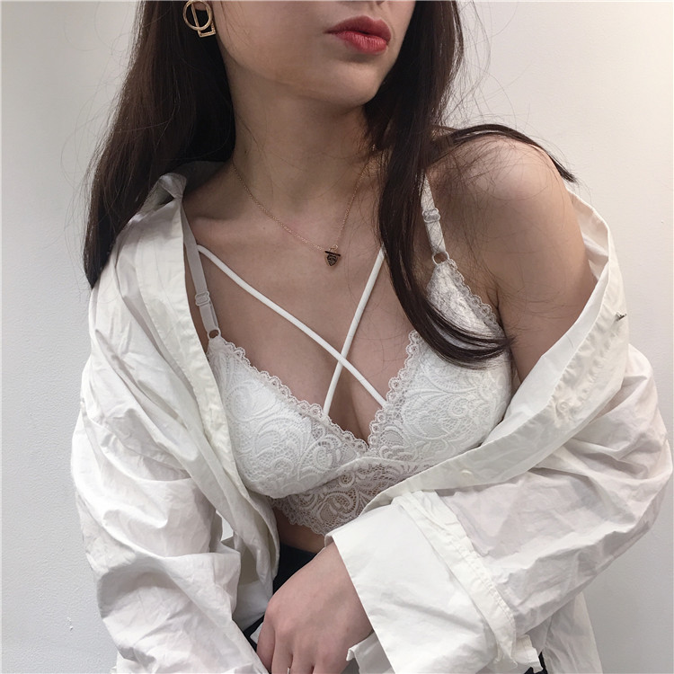 秋季新款復古韓國裹胸抹胸無鋼圈文胸內衣+蕾絲顯瘦打底內褲套裝