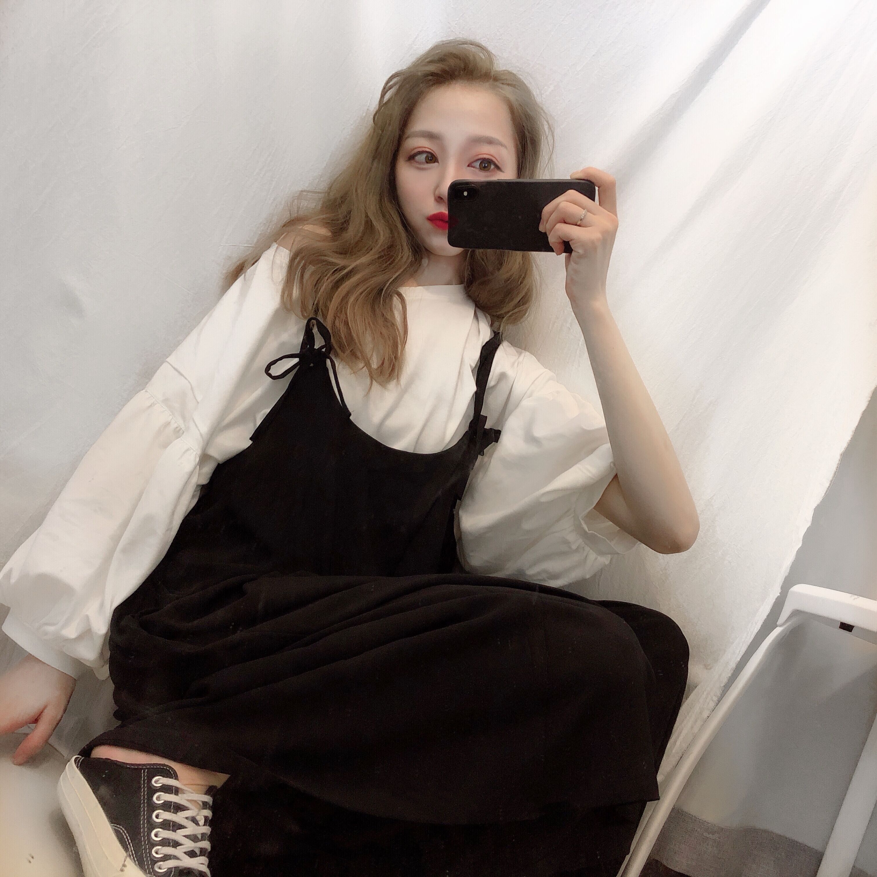 白色上衣單件|臟粉色上衣單件|黑色吊帶褲單件|粉紅吊帶褲單件