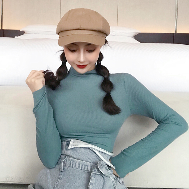 簡約純色高領T恤秋裝女2018新款港味修身顯瘦打底衫氣質長袖上衣