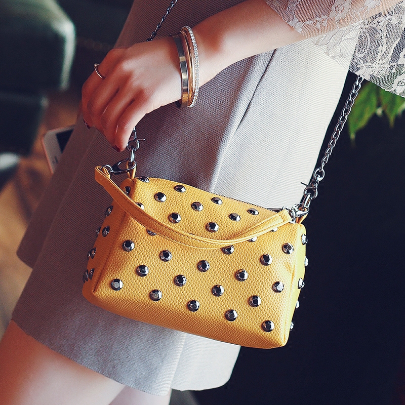 手提包包女新款潮迷你鏈條小方包鉚釘單肩女包韓版百搭斜挎包