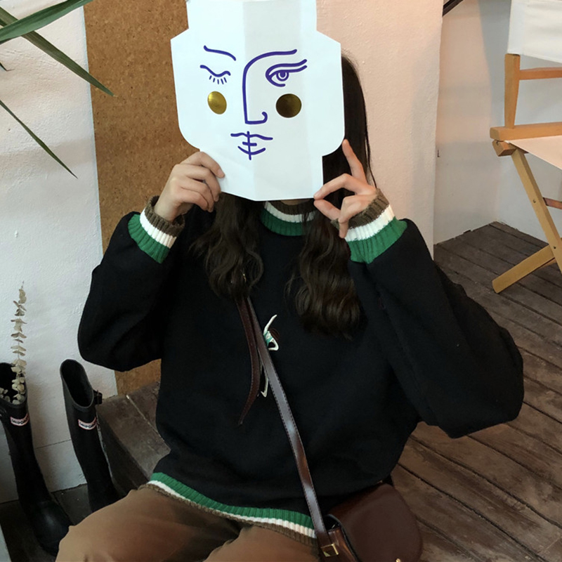 / 秋冬女裝2018新款韓版寬松小高領套頭衛衣學生刺繡小人加絨衫外套