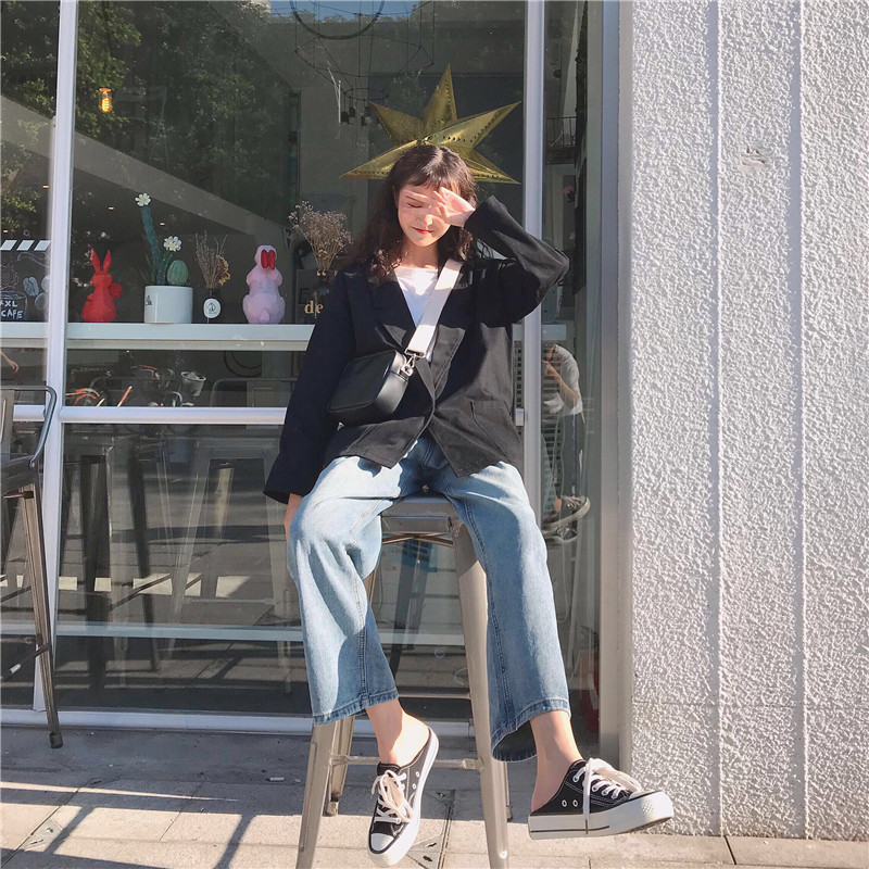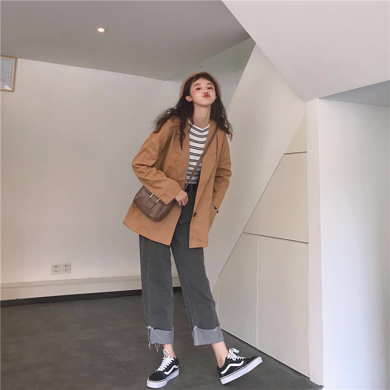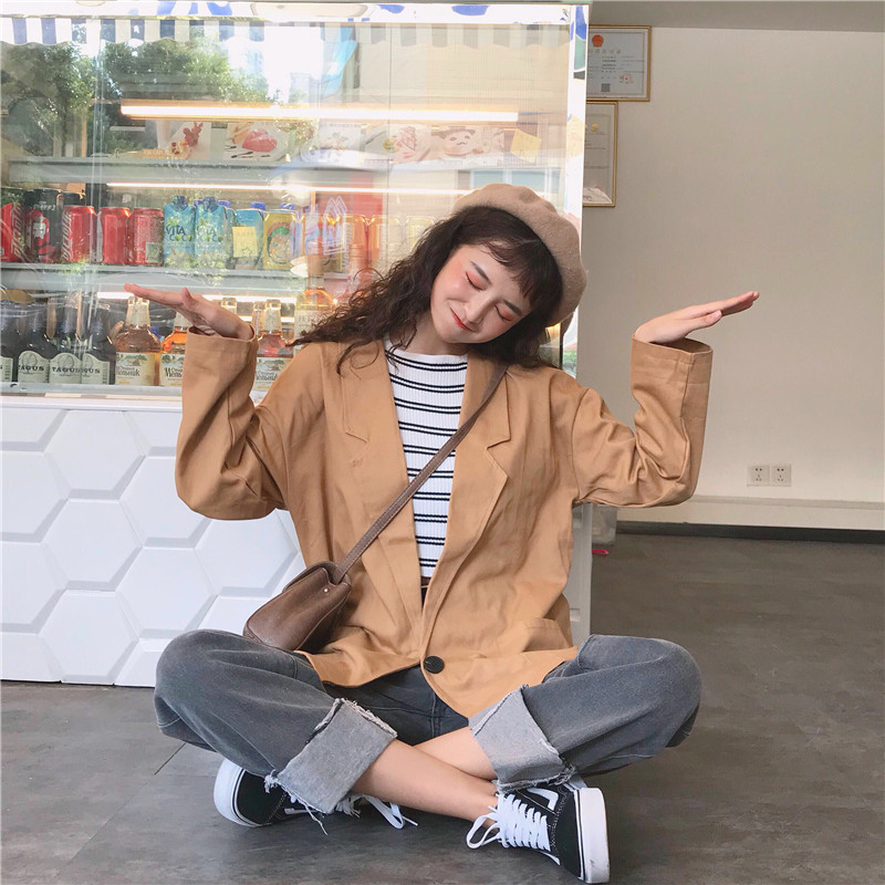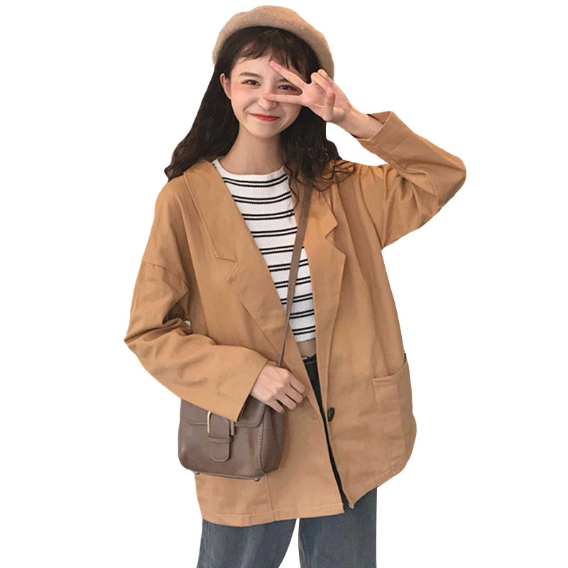 / 秋裝女裝韓版寬松百搭中長款薄款學生休閑開衫長袖夾克上衣外套潮