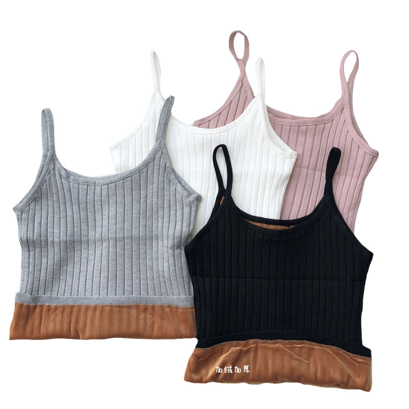/ 秋冬韓版加絨加厚內搭吊帶背心修身顯瘦彈力保暖打底衫內衣上衣女