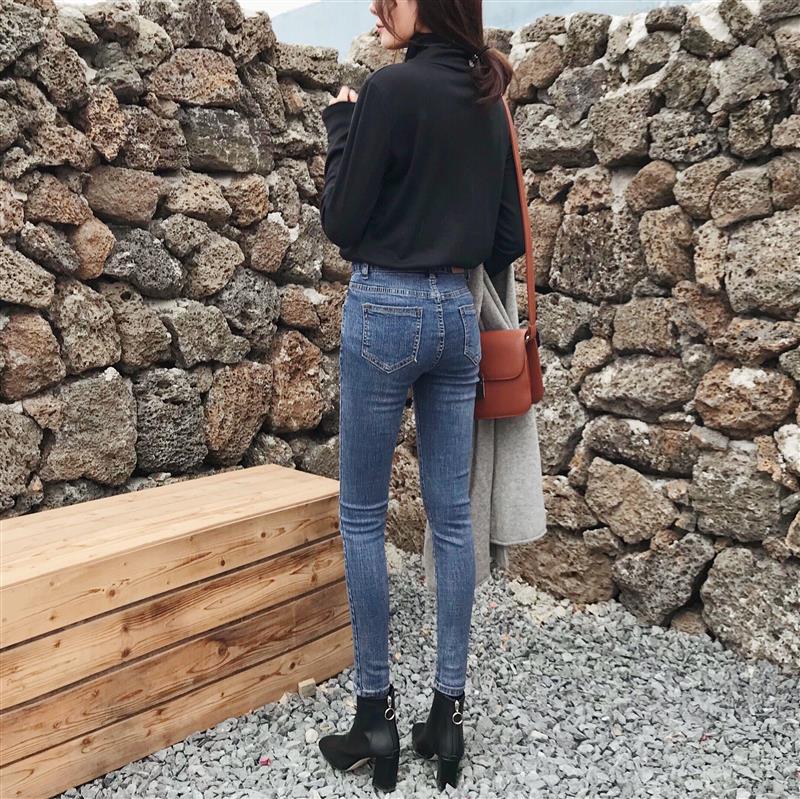 秋季褲子韓國高腰顯瘦修身九分褲chic打底鉛筆褲時尚百搭牛仔褲女
