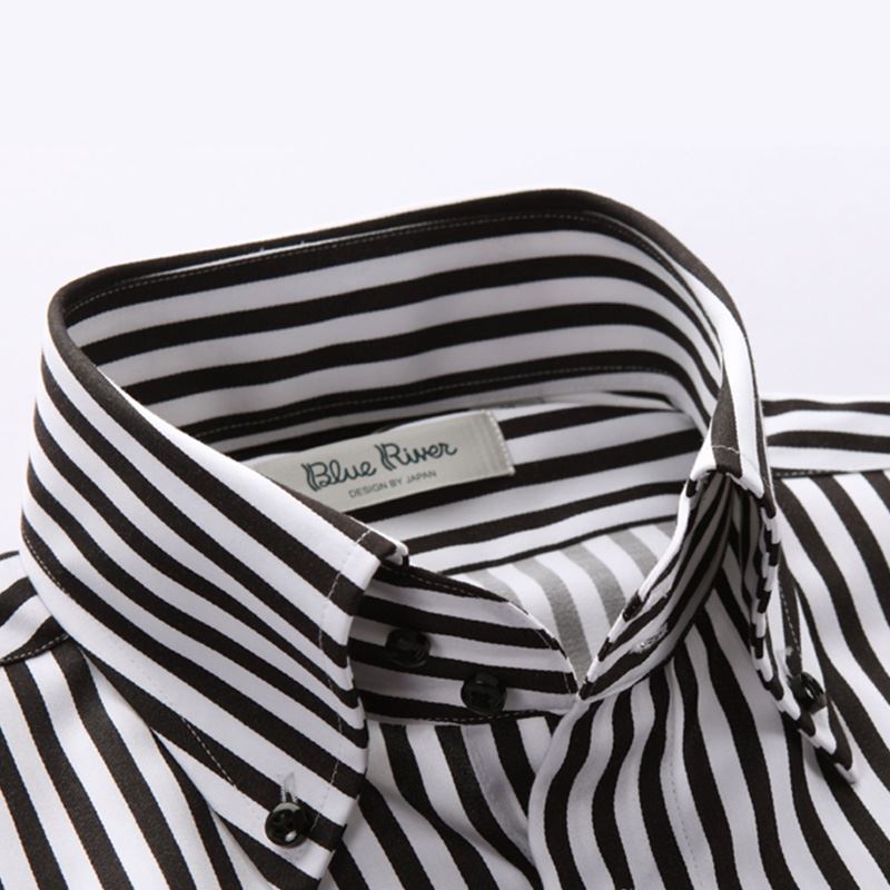 / 藍河秋新款男士黑白豎條紋襯衫男長袖修身時尚休閑純棉免燙襯衣