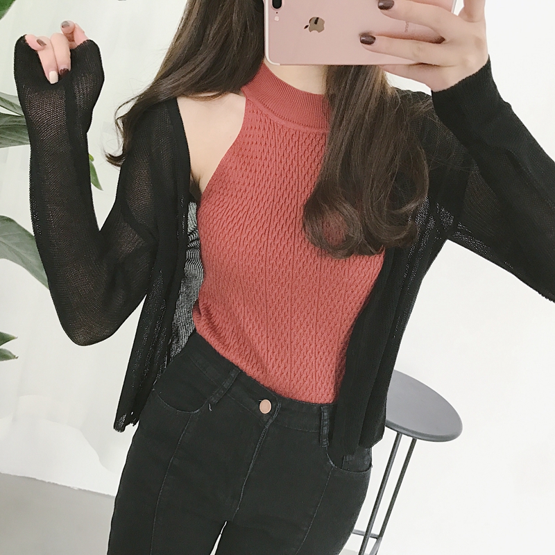 / 復古風修身顯瘦夏季空調衫開衫防曬冰絲針織外搭薄外套短款披肩女