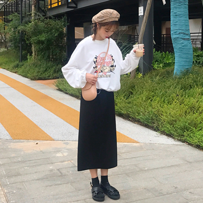 后開叉針織a字半身裙女秋裝新款氣質修身顯瘦花苞高腰一步包臀裙