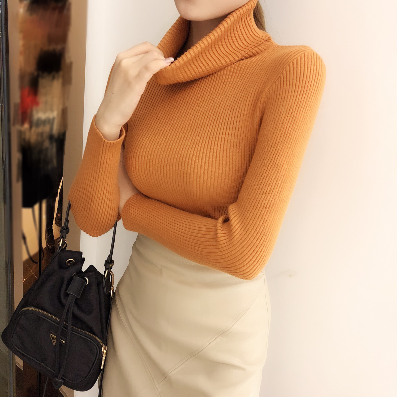 / 韓版chic早秋針織衫網紅毛衣女慵懶風高領百搭修身加厚針織打底衫
